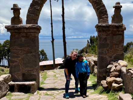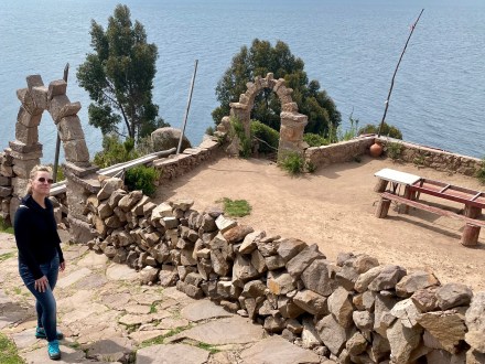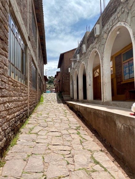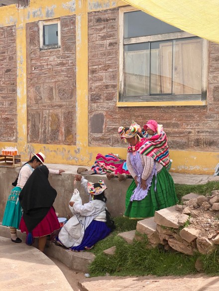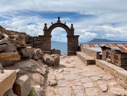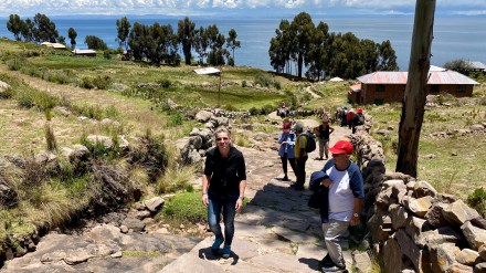 Felgyalogoltunk a sziget majd legmagasabb pontjára (4050 méter) egy családi étterembe, ahol már vártak minket ebéddel. Ebéd után pedig még a nagyon egyszerű főteret megnéztük és vissza lesétáltunk a hajónkhoz egy másik útvonalon mint ahol felmentünk. A szigeten nincsenek gépjárművek, szállodák, az elektromosság erősen akadozik, de még kerékpárok sincsenek. Az utak is inkább járda méretűek. A kilátás viszont gyönyörű a bolíviai hófödte hegycsúcsokra.