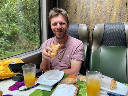 Anno a vonatjegyet átrakattam online egy korábbi járatra, mert rájöttünk, hogy előbb kellene érkeznünk a Machu Picchura, mint elsőre terveztük. Az eredeti vonatjegy egy QR-kóddal és minden infóval felszerelt dokumentum volt, míg a módosított jegy csak egy “sajtcetli”. A biztonság kedvéért még otthon kinyomtattam az eredeti jegyet is, és azzal együtt próbáltuk reggel fél 6-kor meggyőzni a vasútállomáson dolgozókat, hogy ezzel a vonattal mi most utazhatunk. Kicsit értetlenkedtek, de aztán elkapták a fonalat és felengedtek a Machu Picchu felé tartó vonatra. (Pláne, hogy ez egy olcsóbb vonat volt, mint amire eredetileg szólt a jegyünk.)