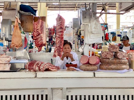 Szombaton a piacon és a környező utcákban minden van: fűszer, hús, sajt, zöldség, gyümölcs, frissen facsart gyümölcslé, frissen főtt húsleves, magok, szárított gyümölcsök, virág, ruha, sál, ajándék tárgy, csoki és még sokminden.