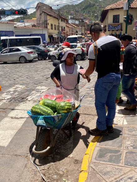 Sok a turista Cuscoban, és látszik, hogy javarészt az idegenforgalomból élnek. Míg Limában szinte csak 1-1 európai embert láttunk, addig itt Cuscoban már majd minden 4-dik turista európai vagy amerikai. Cuscoban minden drágább, mint Limában, bár az itteni árak még mindig alatta vannak az otthoniaknak. A belvárosi részen kifejezetten jó boltok, éttermek és kávézók vannak. Itt inkább beszélnek valamennyire angolul, de például a szállodánk recepciósa kevesebb szót tud angolul, mint én spanyolul. Szóval én nyertem.