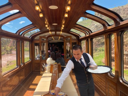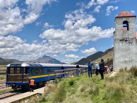 A harmadik típusú vonat az egy adott aránylag távoli úticélhoz visz extra szolgáltatásokkal. Az 1920-as évek stílusát visszahozó vonat rendelkezik: bárral, étteremmel, egy nyitott hátsó kocsival. De ahova szólt a jegyünk és ültünk az is egy tök kényelmes hely kis asztallal. Persze mászkálhatsz bármerre. Ilyen vonat megy a Szent-Völgybe és a Titicaca-tóhoz. Mi ebből a típusú vonatból a Titicaca-tó felé tartóra szálltunk fel reggel.