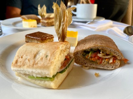 Amikor a belépőjegyet vettem, akkor feldobta a rendszer a buszjegyen kívül azt a lehetőséget is, hogy a Machu Picchu bejáratánál lévő étterembe egy büfé asztalos ebédre befizessem magunkat. Gondoltam jól fog esni, és ez így is volt. Mivel későn értünk le (fél 3 volt már), nem is voltak sokan.
