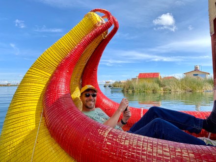 A hajónkkal a negyedórányira lévő Los Uros szigetekhez (vagyis úszó szigetek) mentünk először. Ez egy teljes dilemma nálam mindig: befizetsz egy ilyen szervezett programra, de hányan lesznek ott rajtad kívül, mennyire lesz autentikus a program, mennyire lesz a túravezető élvezetes, szimpatikus… stb.