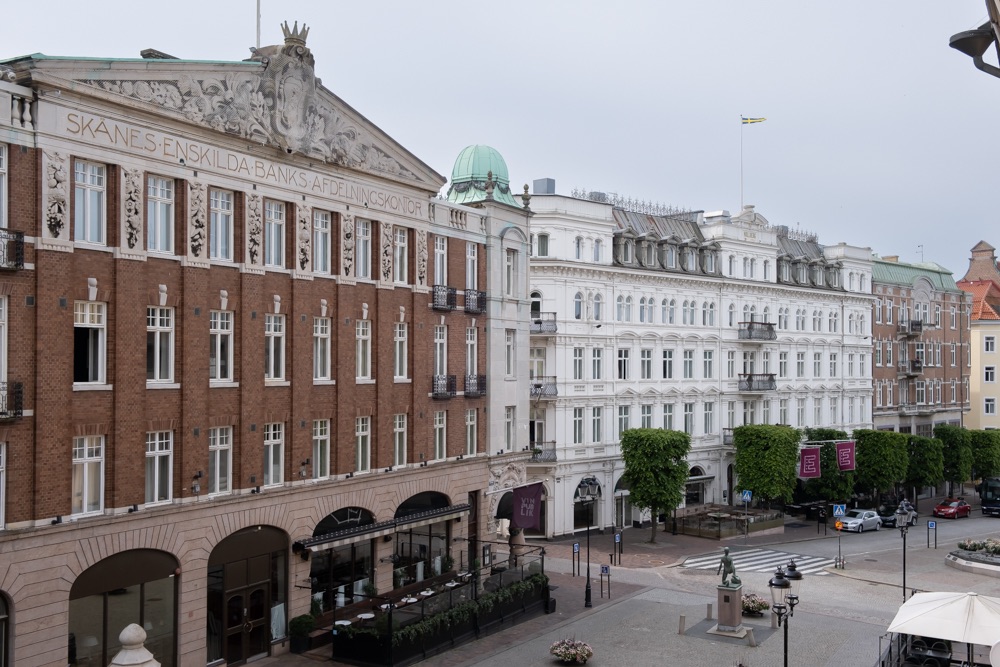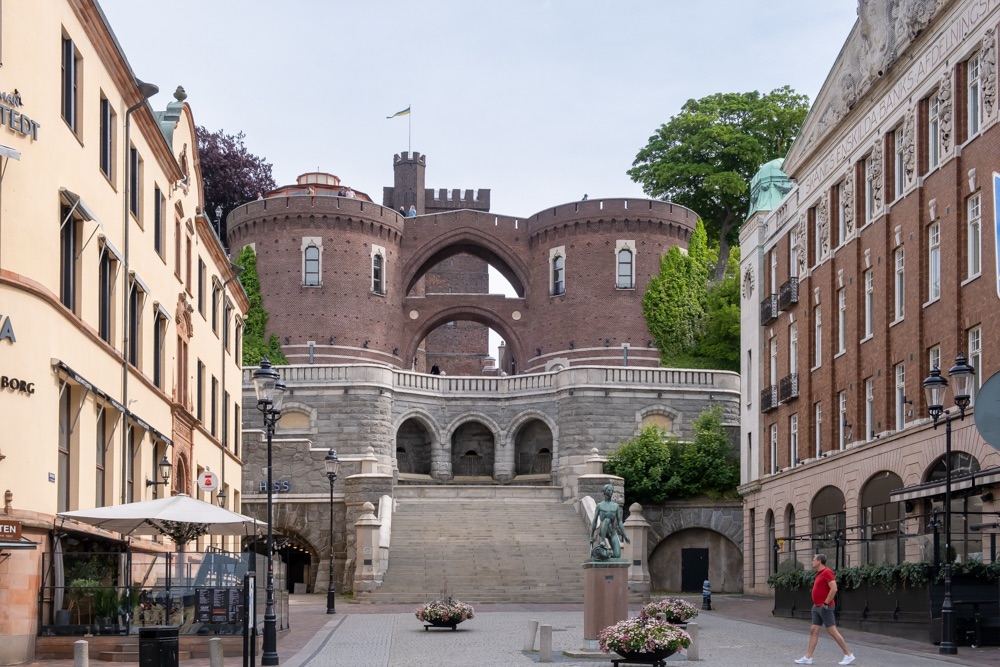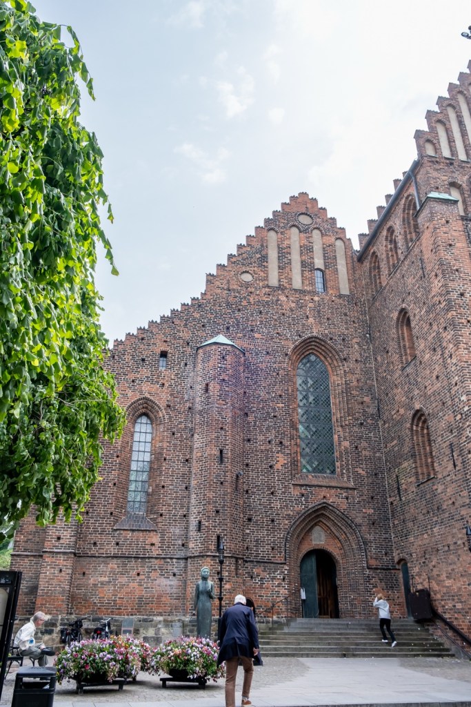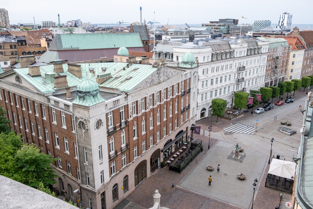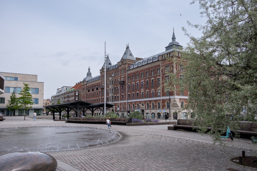 Malmö Svédország harmadik legnépesebb városa Stockholm és Göteborg után. A belváros másik részével kezdtük a napot, ahhoz képest, amit tegnap este láttunk. Sétáló utcákon keresztül kiértékeltük a malmöi építészetet: néhány megmaradt különleges ház a XVII. századból, néhány szép épület a XIX. – XX.század fordulójáról, és aránylag sok, nem túl szép kocka épület a 70-es évekből. Szombat lévén sokan voltak a városban, a tereken nem csak kiülős / beülős kávézók vannak, hanem piknik asztalok is, ahova a helyiek kiülnek a barátokkal együtt ebédelni. Vagy zárható könyvespolc székkel, ha valaki olvasni szeretne.
