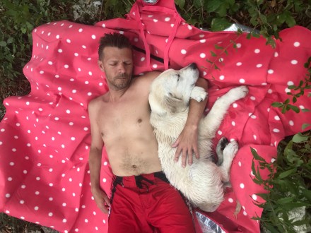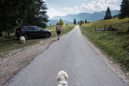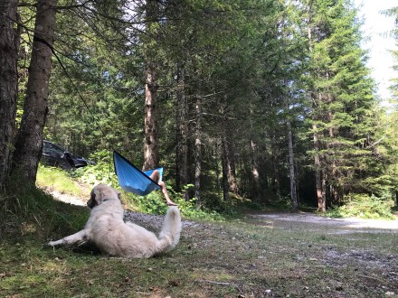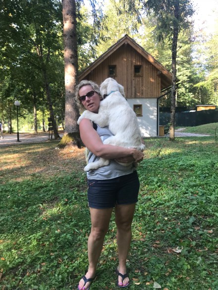 Szlovénia még mindig nagyon kedves és nagyon kutyabarát ország. Bárhova beültünk azonnal kérdezték, hogy a kutyának hozhatnak-e inni, vagy eleve ki volt készítve a kutyatálka vízzel, és mindig kaptak egy-egy simogatást, jó szót a srácok.