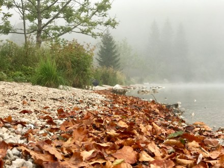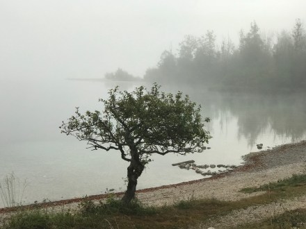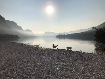 Én aránylag hamar keltem és a srácokkal (Pogo és Boogie) tettünk egy kisebb kört a közelben a tó mentén. Még harmatos és ködös volt az idő. Ugyan csurom vizes cipőben értem vissza, de nagyon hangulatos volt a látvány.