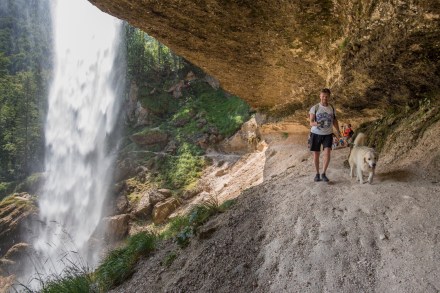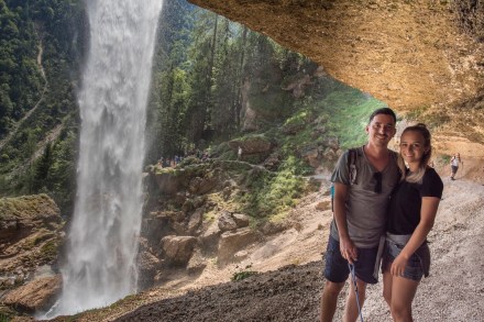 A vízesés 52 méter magasból zúdul alá és egy nem túl hosszú ámde erősen kaptatós szakaszon lehet feljutni. Viszont a vízesés mögé be lehet menni, ami külön élmény. Szombat volt de nem voltak zavaróan sokan. Egy másik útvonalon mentünk le, ahol a kávé után még a parkoló melletti patakot is felfedeztük kicsit.