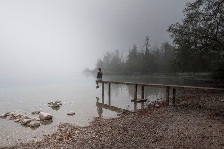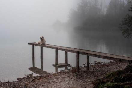 Lidivel mentem reggel kutyasétára, hogy megmutassam neki a hajnali ködös tavat. Csináltunk is néhány képet míg a kutyák élvezték a vizet.