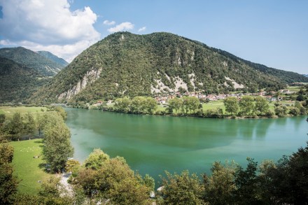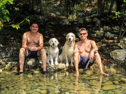Most na Soci hangulatos kis település az Isonzó folyó és az Indrijca folyó összefolyásánál. A hely felfedezése együtt járt az Isonzó partján üzemelő grillezős kipróbálásával, ahol egészen finomat ebédeltünk. Miután minden szegletéből megnéztük a kevesebb mint 300 lakosú települést, kifeküdtünk az Isonzó partjára egy kis délutáni pihenőre. Persze előtte Pogo és Boogie valamennyire le lett fárasztva, de azért így is percekre maradtak csak nyugton.