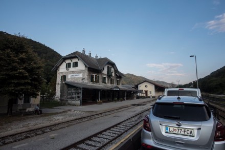 Ákos és Helga barátaink már tavaly ajánlották nekünk, hogy próbáljuk ki a hegyen áthaladó autós vonatot. A vagonokra kocsival együtt hajt fel az ember és a kocsiban ülve élvezi végig az utat. A bő másfél órás autó út helyett 40 perc alatt megérkezik a vonat az úticélba, mert a hegyen át néhol akár több mint 6 km hosszú alagúton megy át a vonat, míg az autóút a hegyeket megkerüli. A közelünkből Bohinjska Bistrica-ból indul a vonat Nova Gorica-ba, de közben 2 helyen megáll: Podbrdo-ban és Most na Soci-ban. Egy nap 5 vonat megy oda és 5 jön vissza.