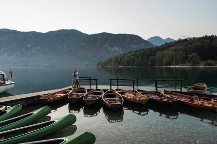 Tegnap a hazafelé úton megálltunk a Bohinji-tó partján a csónak bérlős bódénál. Már nem voltak nyitva, de azt lehetett látni, hogy milyen típusú csónakok közül lehetne választani, illetve, hogy 10-kor nyitnak.