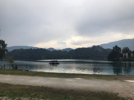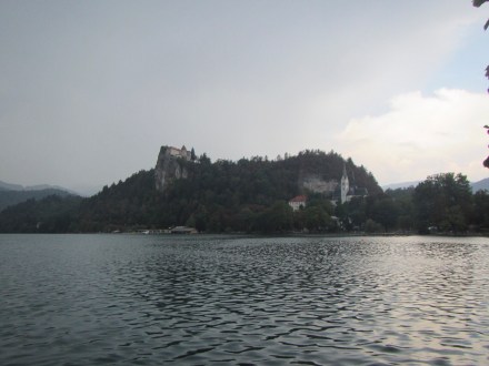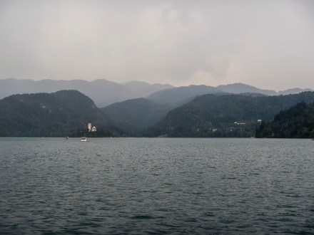 Abban bízva, hogy Bled mégiscsak úgy van 30 km távolságra, hogy mindenféle hegy van a két tó között, gondoltuk ott tuti jobb idő lesz. És az időjárás előrejelzés is minket igazolt. Kocsiba pattantunk kutyástul, aztán csodálkoztunk mikor ott megálltunk, hogy miért van beborulva es miért dörög? A válasz is megérkezett hamar a miértre… Az lett a nagy bledi túránk eredménye, hogy beültünk egy helyre ebédelni.
