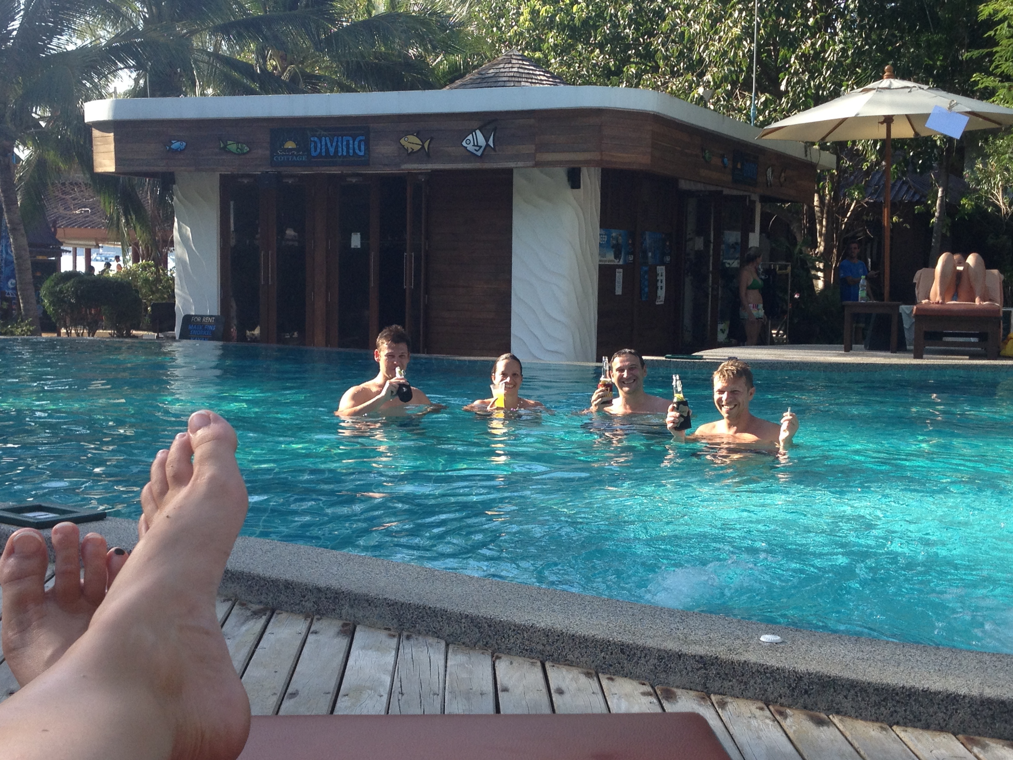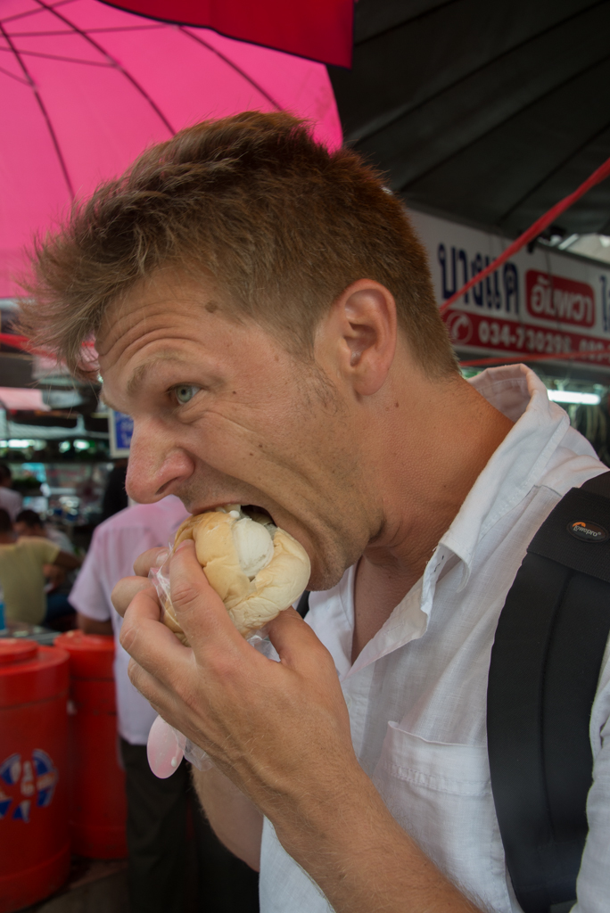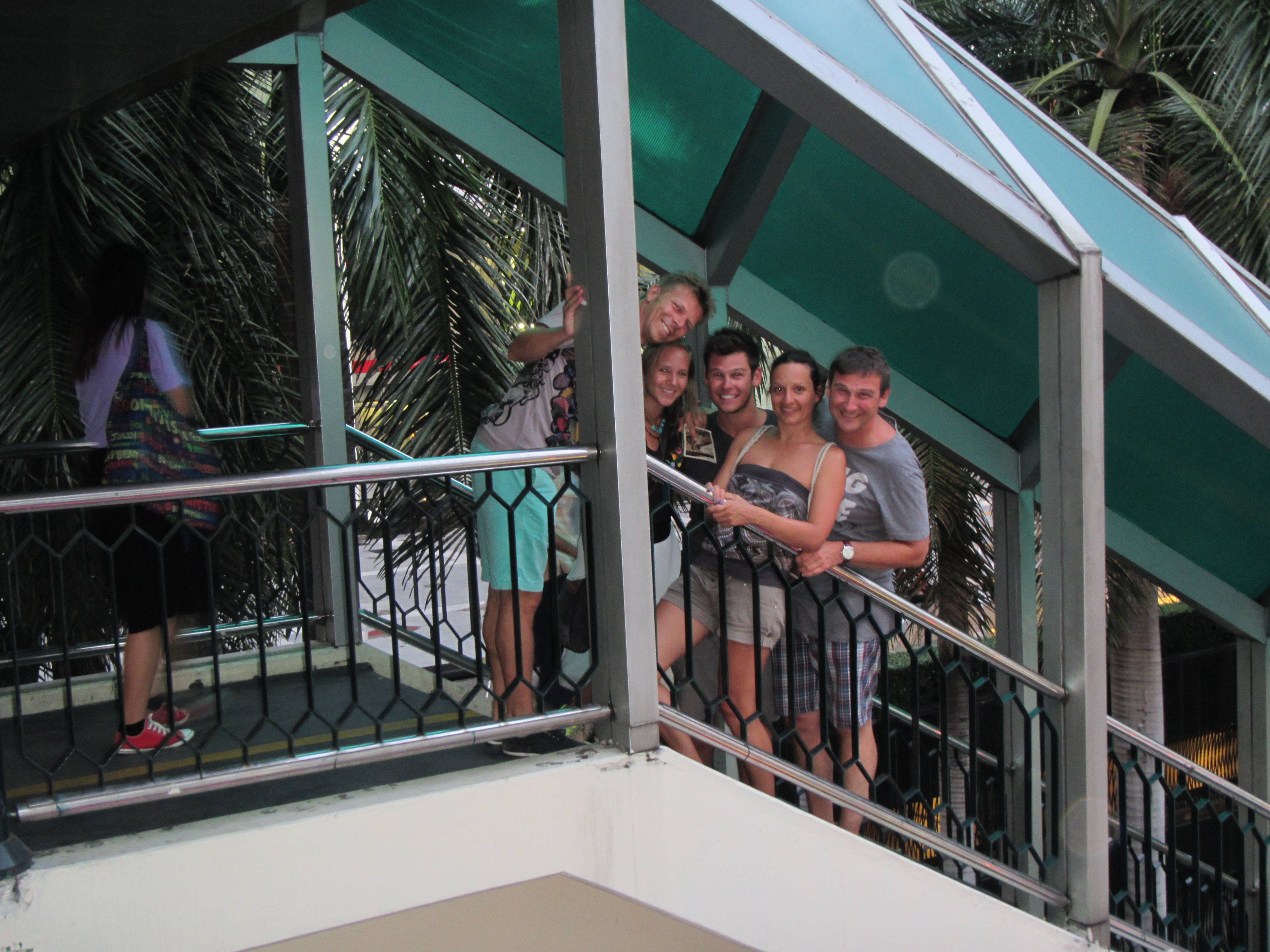 A nap, amely nem 24 órából állt, hanem 29-ből. Reggel korán keltünk, gyors csomagolás és reggeli után elköszöntünk Rékától. Bangkoki idő szerint 8 óra után picivel indultunk a szállásról a reptérre. Nem nagyon tudtuk kiszámolni, hogy milyen lesz a forgalom, és már kétszer is ültünk dugóban a két nap alatt, így nem mertünk kockáztatni. Oly gyorsan kiértünk, hogy 3 óránk volt a gép indulásáig. Na nem kellett szenvedjünk, hogy mivel töltsük el azt a 3 órát, mert az útlevél vizsgálat baromi hosszas volt. Ráadásul az országba való belépéskor ki kellett tölteni egy űrlapot, aminek az egyik felét maguknál tartották a hivatalnokok, a másikat lepecsételve visszaadták, hogy majd kilépéskor kell leadni. A fiúknak még be is tűzték az útlevelükbe, így ők nem hagyták el. Mondjuk Eszto se hagyta el, csak én… Volt nagy dilemma, hogy most akkor mi lesz. Dió megnyugtatott, hogy tuti nem én vagyok az első ember, aki elhagyja. Valószínűleg igaza volt, ugyanis a hosszú sor végén volt egy pult, ahol ki voltak rakva ilyen űrlapok. Hamar kitöltöttem, és amikor sorra kerültem akkor elővettem a legszebb mosolyom, majd őszintén bevallottam, hogy a kilépő papírom elhagytam, de már rajzoltam helyette újat. Emberünk pedig szimplán bólintott, jelezve, hogy tudomásul vette, majd küldött még egy visszamosolyt.