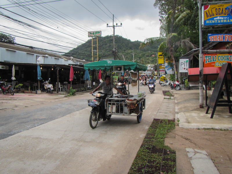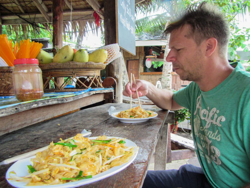 Reggel korán keltünk, hogy hamar becsomagoljunk mindent és még reggelizzünk is. A reggelire bőven kell hagyni időt ezen a környéken, ugyanis a thai-ok nem arról híresek, hogy lesnék a betérő fizetős vendég minden kívánságát. Amikor bementünk kávét kérni arra alsó hangon 20 percet kellett akkor is várni, amikor senki se volt rajtunk kívül, de volt olyan is, amikor 50 percet csak ültünk és vártunk. Szóval ezzel számolva hagytunk időt rendesen a reggelire.