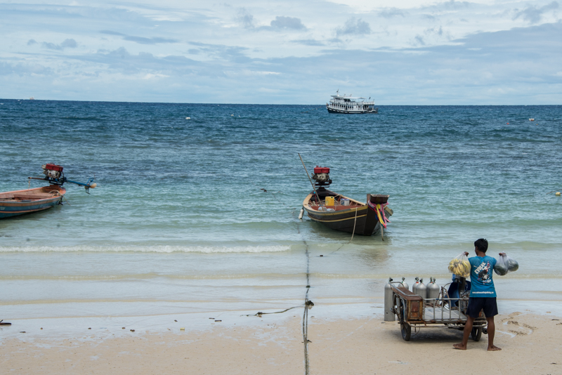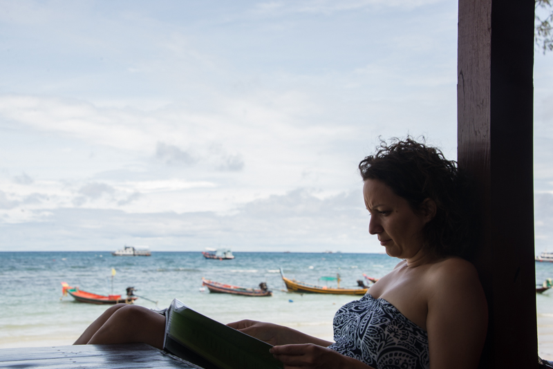 Reggeli után összecsomagolva Esztoka átment a resortunk recepciójára, hogy a biztonság kedvéért még onnan elintézze a komp jegyünket, amivel a délelőtt folyamán el kell jussunk Koh Samuira. Jött a meglepetés. Az egyik kompra nincs jegy. A másik komp, ami még jár a délelőtt folyamán az pedig lerobbant. Valószínűleg emiatt van tele a járó komp, mert mindenkit átraktak arra. Amennyiben nincs jegy, akkor csak délután tudunk átmenni Koh Samuira, vagyis 5-re érünk be a komppal, igen ám, de a Bangkokba menő repülőgép 2 óra előtt indul… Ezzel nem számoltunk. Gyorsan átvettük a lehetőségeinket: