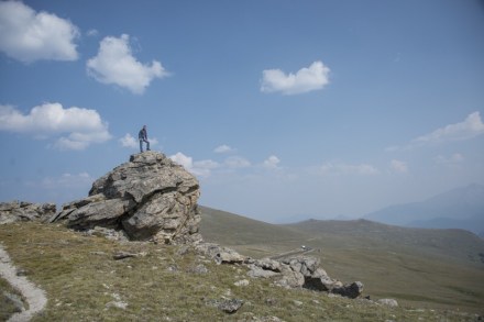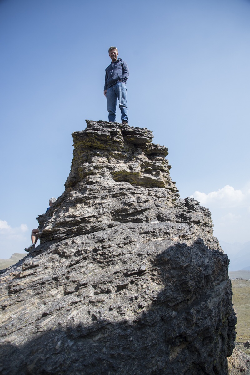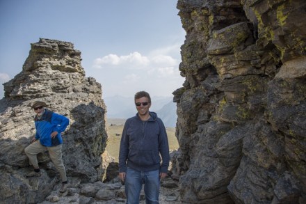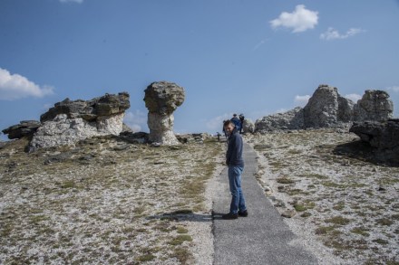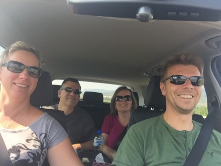 Volt egy lukas szikla, olyan mintha egy nagy ablaka lenne. Igen ám, de az az ablak nagyon magasban volt. Kitaláltuk, hogy fel kellene valahogy oda jutni. De hát tuti nem lehet – állapítottuk meg. Majd egyszer csak megjelent ott fent az ablakban egy pasi. Ne má! Akkor oda nekünk is fel kell jutni! Elkezdtük körbejárni a sziklákat. De ezek olyan hatalmas sziklák voltak egymás hegyén hátán, megközelíthetetlen. Felordítottunk a pasinak, hogy megkérdezzük, hogy honnan ment oda fel. Mutogatott valamit, de nem igazán volt az tiszta a számunkra. A parknak a térképe nem mutatta, hogy oda fel lehetne jutni. De ha ez az ember feljutott, akkor nekünk is fel kell! – gondoltuk, és azt mondtuk, hogy addig nem megyünk haza, míg ezt a kihívást nem teljesítettük. Végül Bandi azt találta ki, hogy próbáljuk meg kocsival megkerülni, és valahogy hátulról támadni. Na, egy órás küzdelem volt, mindenféle felfedező utakkal tarkítva, ahol még a madár sem járt, szikla mászással, meg szűkebbnél szűkebb helyeken való átküzdéssel, majd visszakanyarodással, mert mégse volt jó az irány. De végül teljesítettük!!! Jó érzés volt!!!