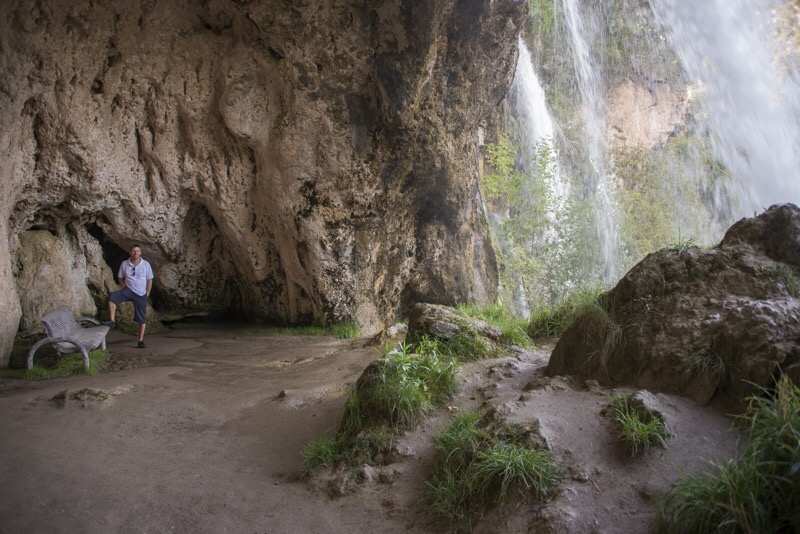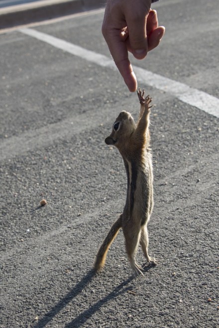 Végül 12 óra körül értünk a 37 km hosszú 18 kilátó ponttal telerakott parknak a végére úgy, hogy végig kocsival lehetett menni, közben pedig több rövidebb séta útvonalat is bejártunk. Volt minden: barlang: kisebb – nagyobb, Echo pont, ahol a Bandi nem bírta abbahagyni a fütyülést, nagyon érdekes növényzet, cuki kis állatok: gyík, mókus, nyuszi, kecske, és elvileg hegyi oroszlán is, de ez utóbbival nem találkoztunk.