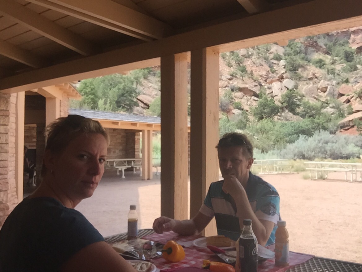 A park végében volt egy piknik terület, ahol megebédeltünk a hozott kis elemozsiánkból, majd elindultunk Utah állam felé.