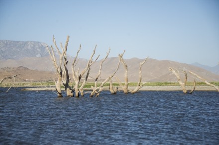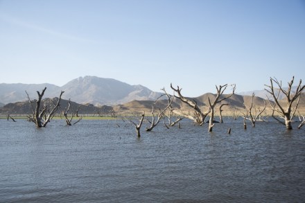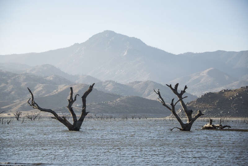 Hosszas autókázásunkat még egy ponton félbeszakítottuk. A térképre rábökve egy tóra, találomra megálltunk az Isabella Lake-nél. Nagyon nagy lehet a szárazság, mert a térkép alapján a tónak a fele van meg körülbelül. De iszonyat érdekes volt, ugyanis mindenfelé fák álltak ki a vízből. Jól nézett ki. Megnéztem a neten és úgy látom, hogy a kiálló fákból egészen kevés vagy semennyi se látszik, ha a vízszint a helyén van.