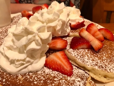 Viszont nagyon jó dolgunk van mert a házunk aljában van egy Starbucks kávézó, ahol több mint finom a kávé. Nem ott reggeliztünk, hanem elindultunk, hogy egy igazi villás reggelit szerezzünk. Még tegnap este egy elég puccos utcában sétáltunk vissza a szállásra, ahol mindenféle különleges kiülős éttermek voltak és az egyik mellett egy kis palacsintázó. Végül oda jártunk beülni, de annyira tele volt, hogy vagy 10 ember állt előttünk sorban.