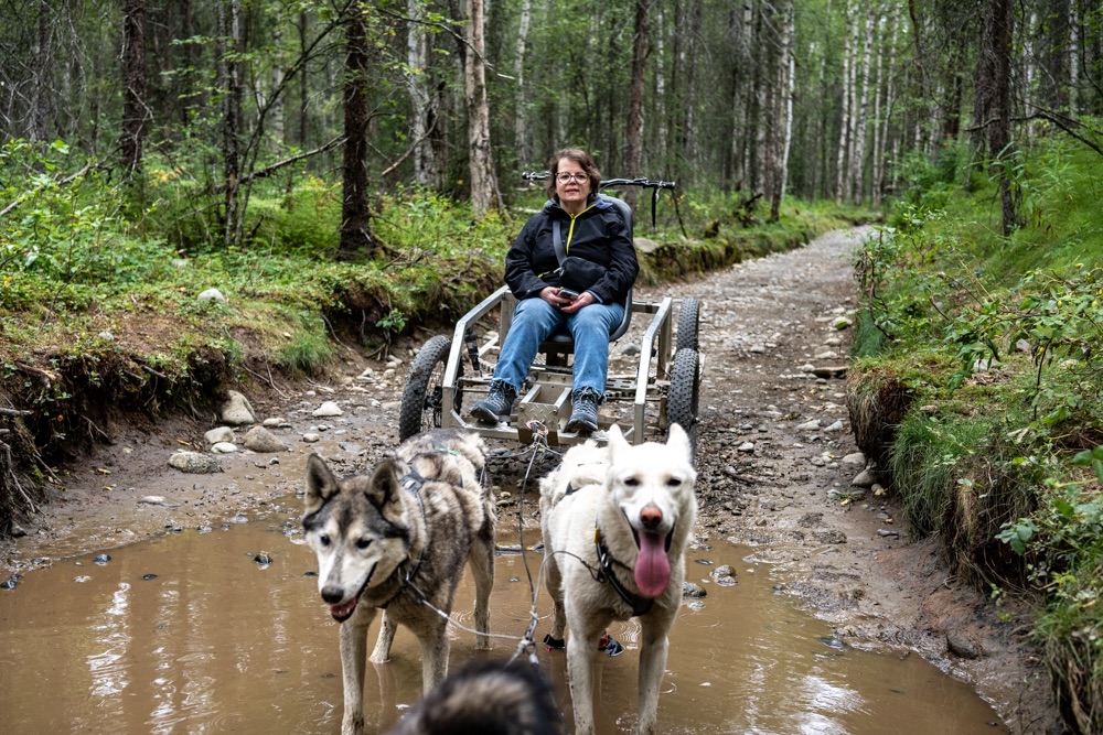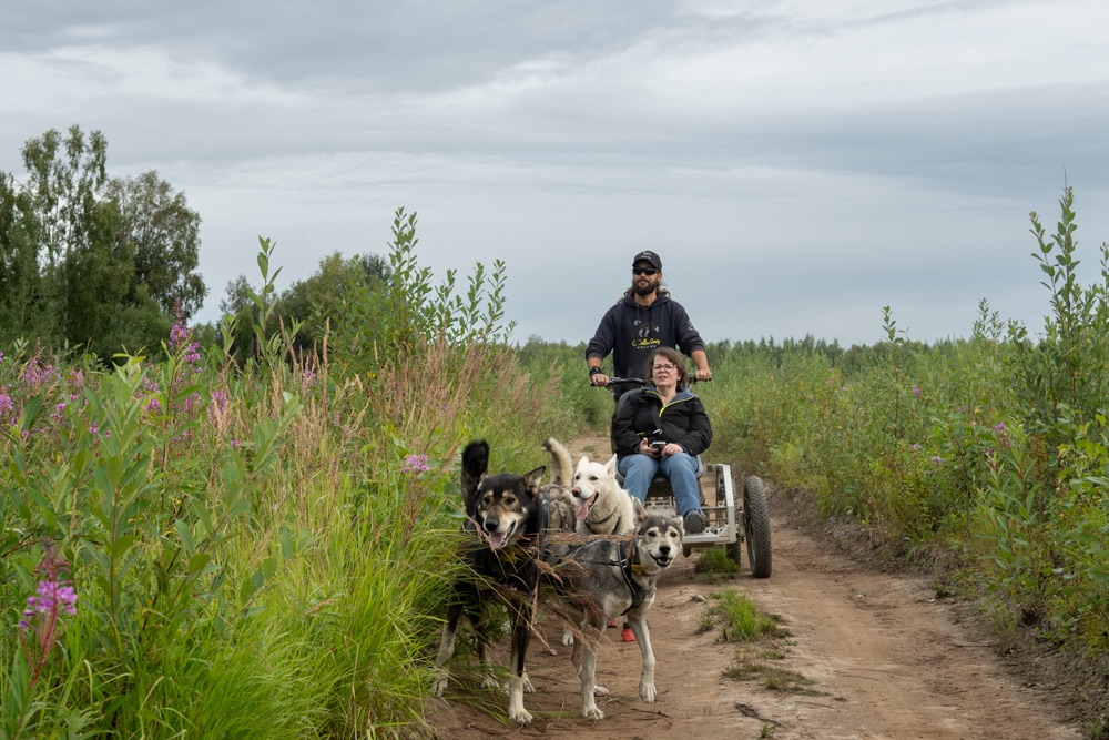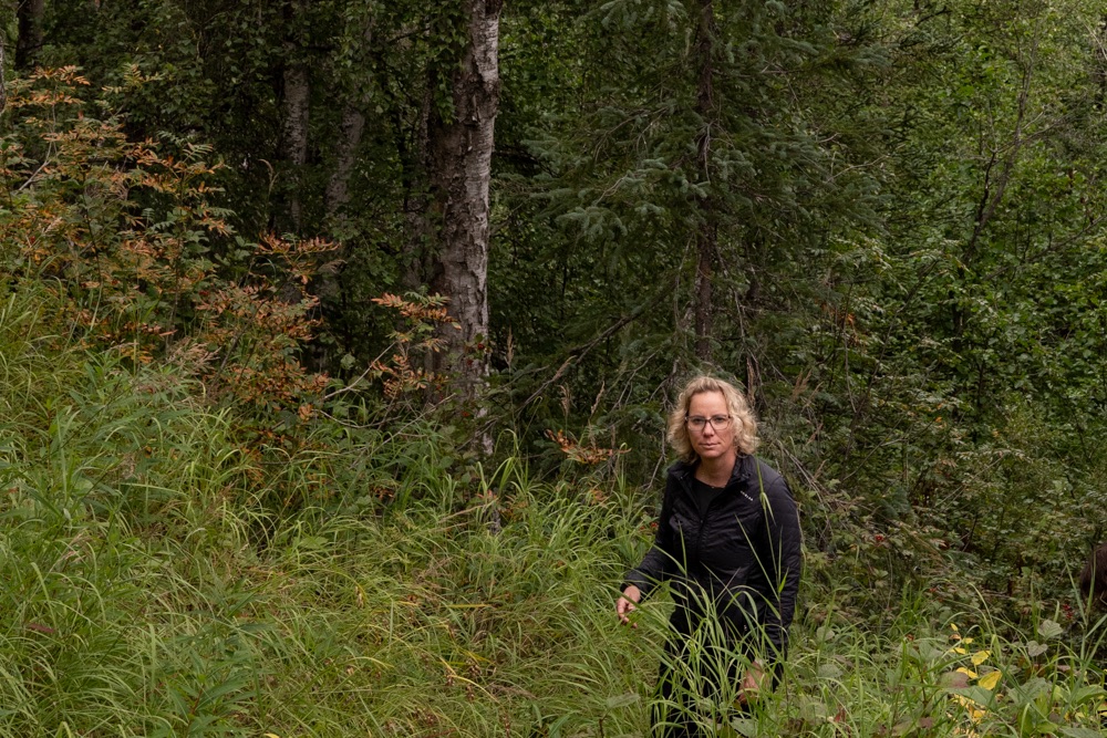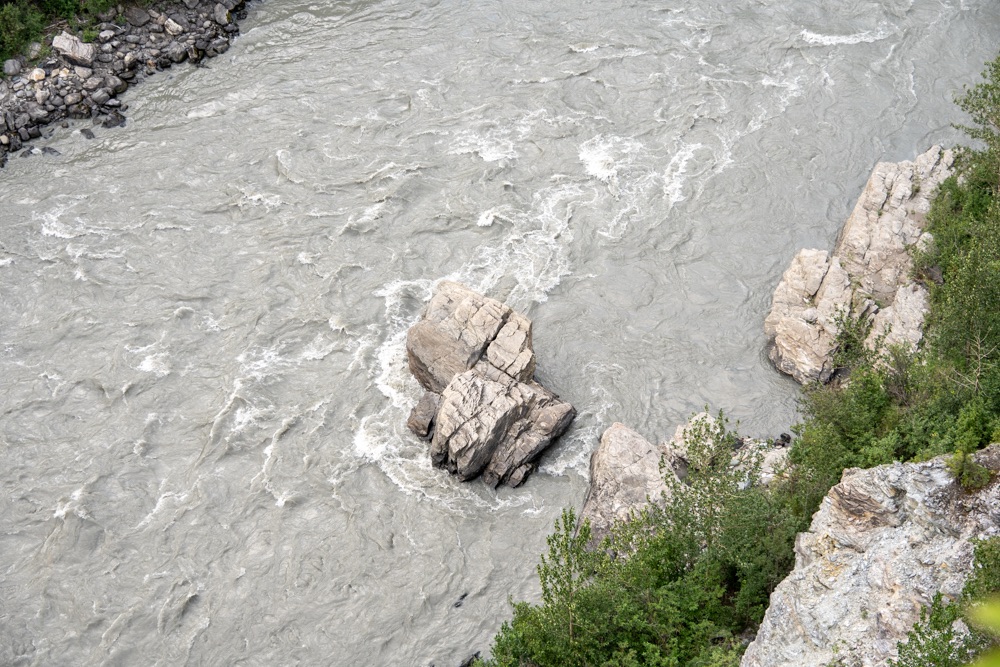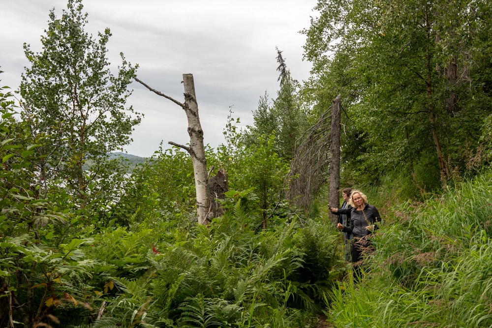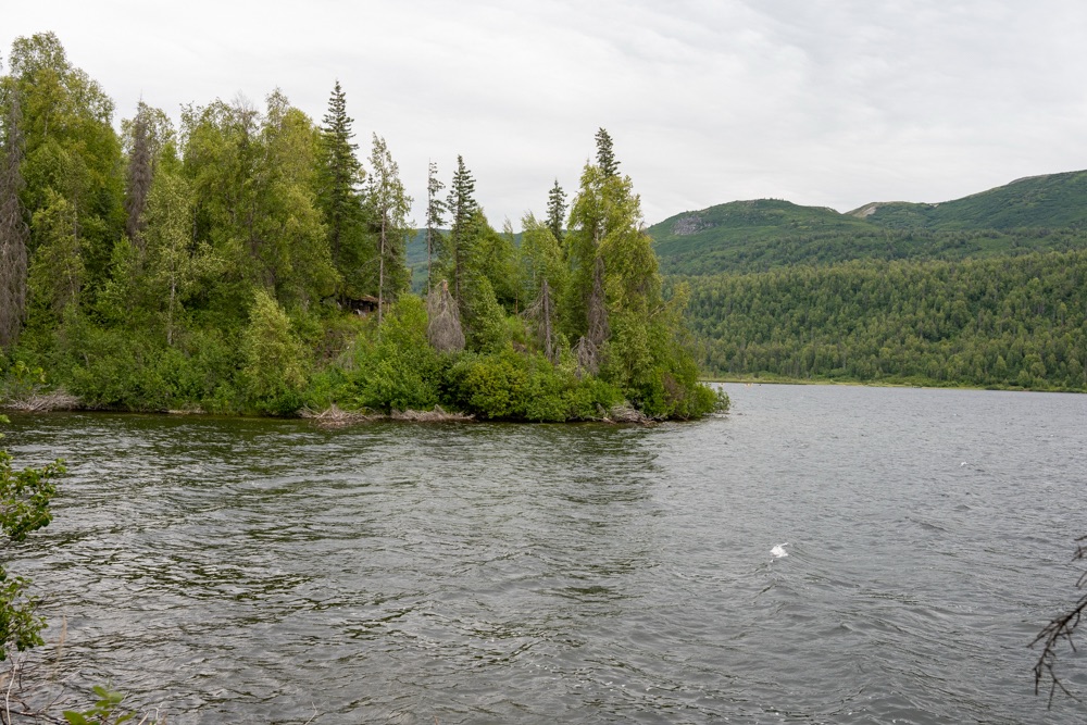 A nap poénja az volt, amikor jöttünk visszafelé a boltból, akkor a Nenana folyó felett átkeltünk egy magasan lévő hídon, és közvetlenül utána volt egy poros, koszos kis kiálló, ahol Bandi leparkolt, mondván hátha ki tudunk sétálni, körbenézni. Egy vékony kis ösvényt találtunk, ami kivitt minket egy szikla szélére, ahonnan a folyóra is szép volt a lelátás és a hídra is. Fotóztunk és élveztük a látványt, majd libasorban elindultunk vissza. Én mentem elől, de félre kellett állni, mert jött szembe egy korunkbeli srác motoros ruhában. Megkérdi egyszerű angolsággal, hogy szép-e a kilátás. Mondom igen, érdemes kisétálni (hasonlóan egyszerű angolsággal). Majd Bandi mond nekem valamit, mire a srác: Csak nem magyarok vagytok? – Ő Szegeden él, de kijött a nagynénjéhez San Franciscoba úgy egy hónapra, hogy közben motorral túrázik Alaszkában. Minden évben kijön, a motor fixen meg van, és a nemzeti parkokat járja be. Idén Alaszka van neki soron. Ez is egy élet. De szimpi srác volt.