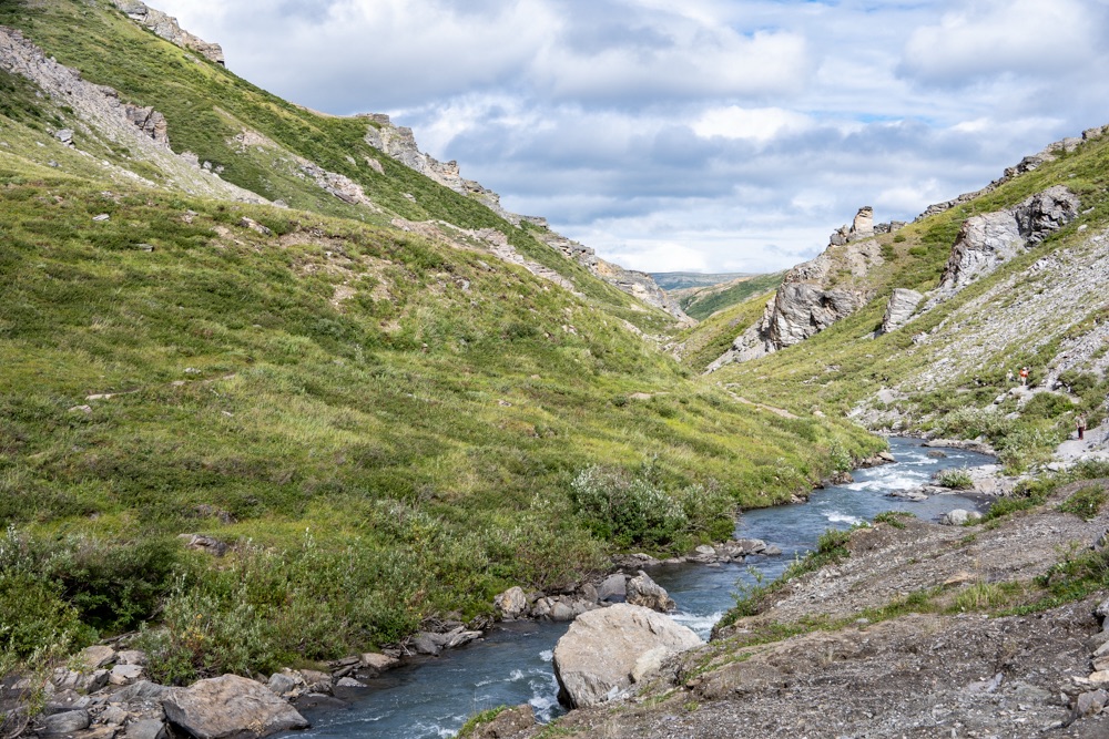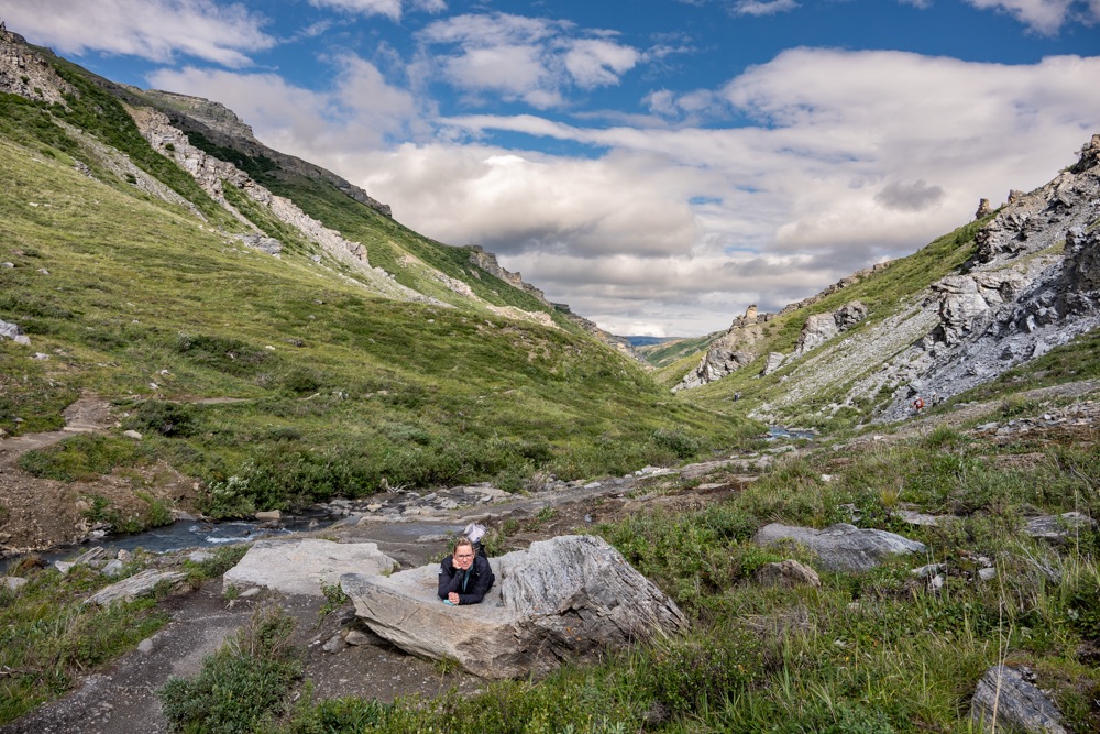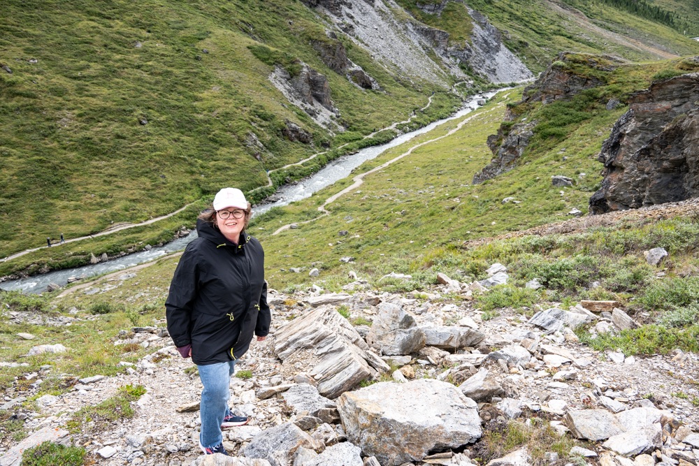 Kezdésnek a Savage River Loop nevű túra ösvényen mentünk végig, a Savage folyó mentén – mint ahogy a túra neve is mutatja. Ez egy könnyedebb túra, ami aránylag sík területen megy végig, de körbe veszik a hegyek, ami miatt olyan látványban volt részünk, hogy lassan haladtunk. Néhol letértünk az útról, elkalandoztunk egy-egy szikla megmászására, vagy helyi állatok felfedezésére. Macit nem láttunk, pedig a parkoló menti tábla ígérte, hogy itt még az is van.