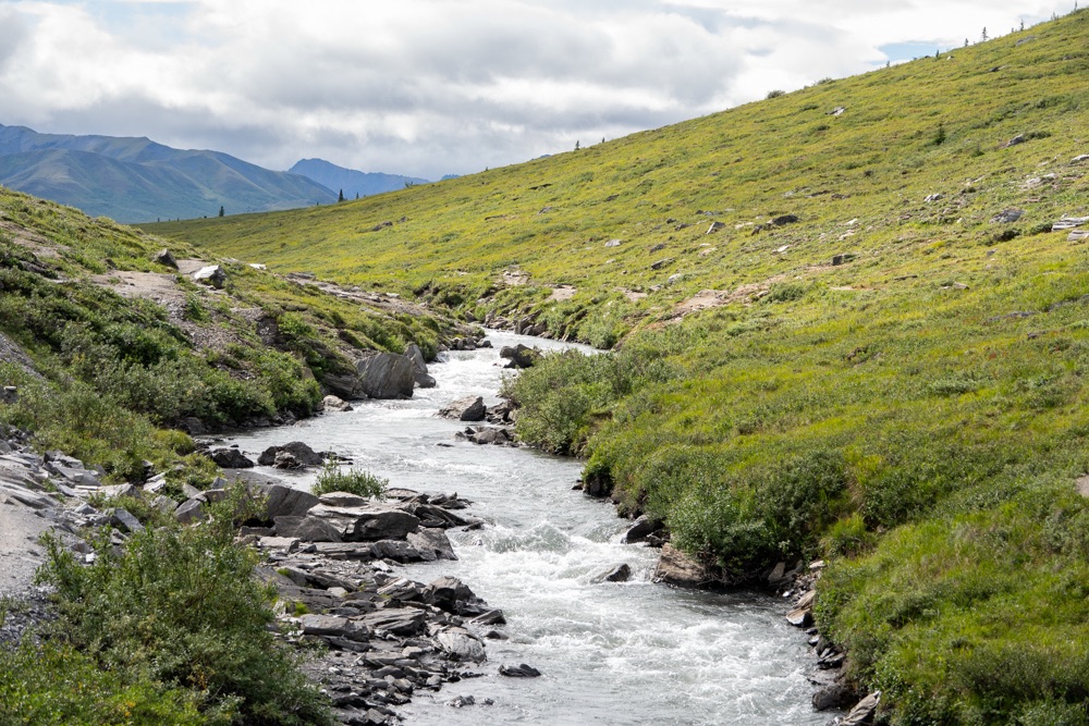 A mai nap a Denali Nemzeti Parkról szólt. Délelőtt 10 órakor indultunk a szállásról. Kicsit csípős volt a reggel, induláskor “már” 10 fok volt. De nem esett az eső és ennek mi nagyon örültünk.