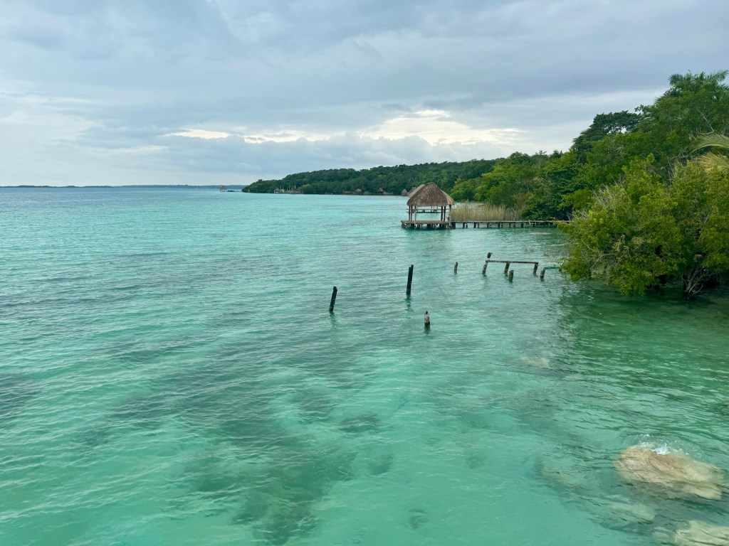 10 órakor a Costa Maya-n található Mahahual tengerparti falu felé vettük az irányt, ami Bacalartól bő egy órányira van. Több helyen láttam a tengerparti részről mutatós kis képeket és tegnap Melany is ajánlotta. Mondjuk ő azt mondta érdemes reggel korán menni, de nekem ez az info nem jött át, ezt utólag mesélte Bandi. Mindenesetre tettünk Mahahual felé egy teljesen felesleges kitérőt: hatalmas hajóval érkező turisták tömege volt a parton, és ezzel arányosan a falu összes lakosa, ki taxit kínálva, ki az éttermét, ki pedig csak kalapot vagy hűtőmágnest. Így aztán szerintem 15 percnél többet nem töltöttünk a Maya Riviéra ezen részén.