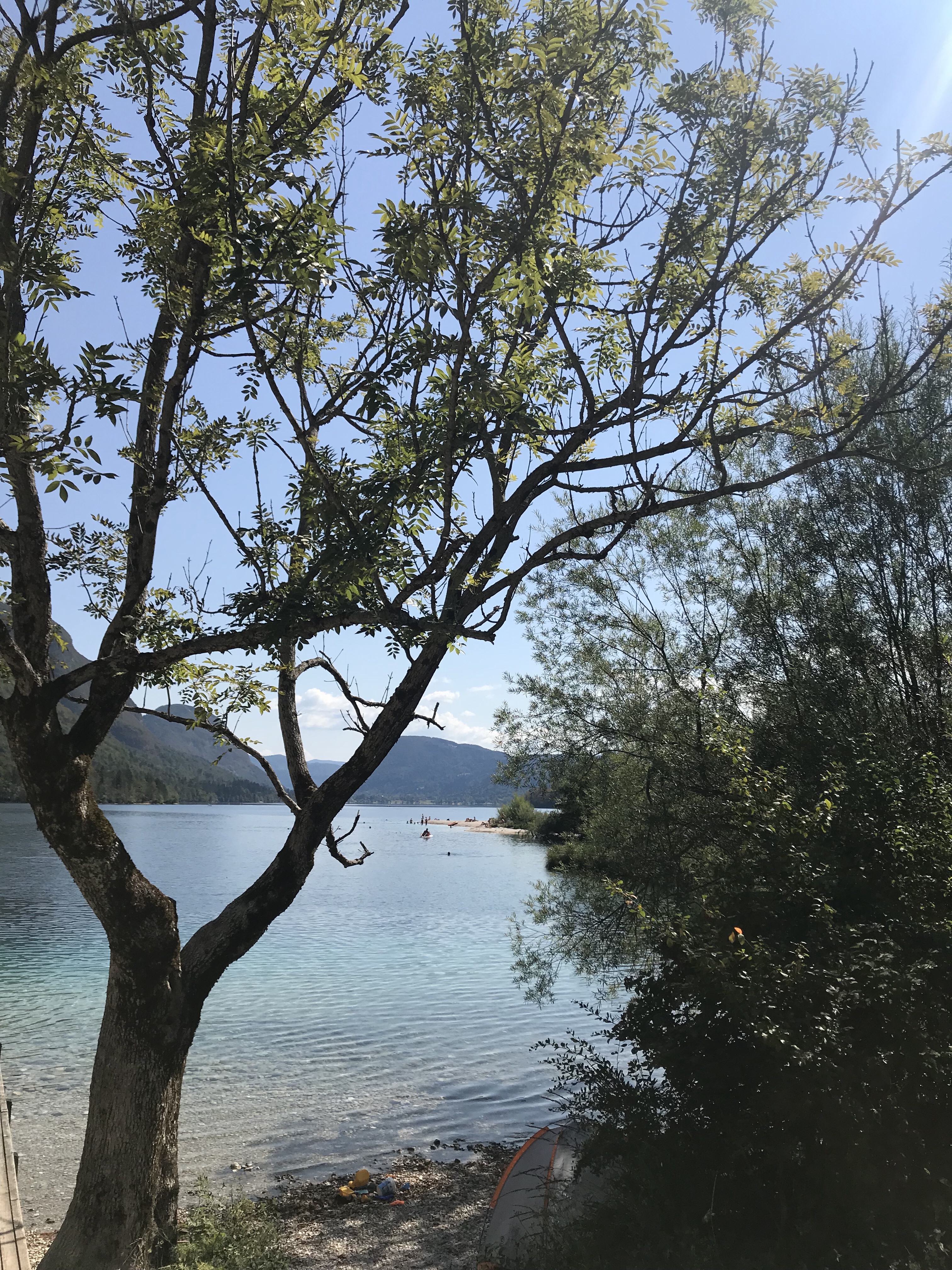 Idén szinten a Bohinji-tónál vagyunk, de míg tavaly Stara Fuzina nevű falu volt a bázisunk, addig most a tó túlvégén, Ukancban vagyunk.