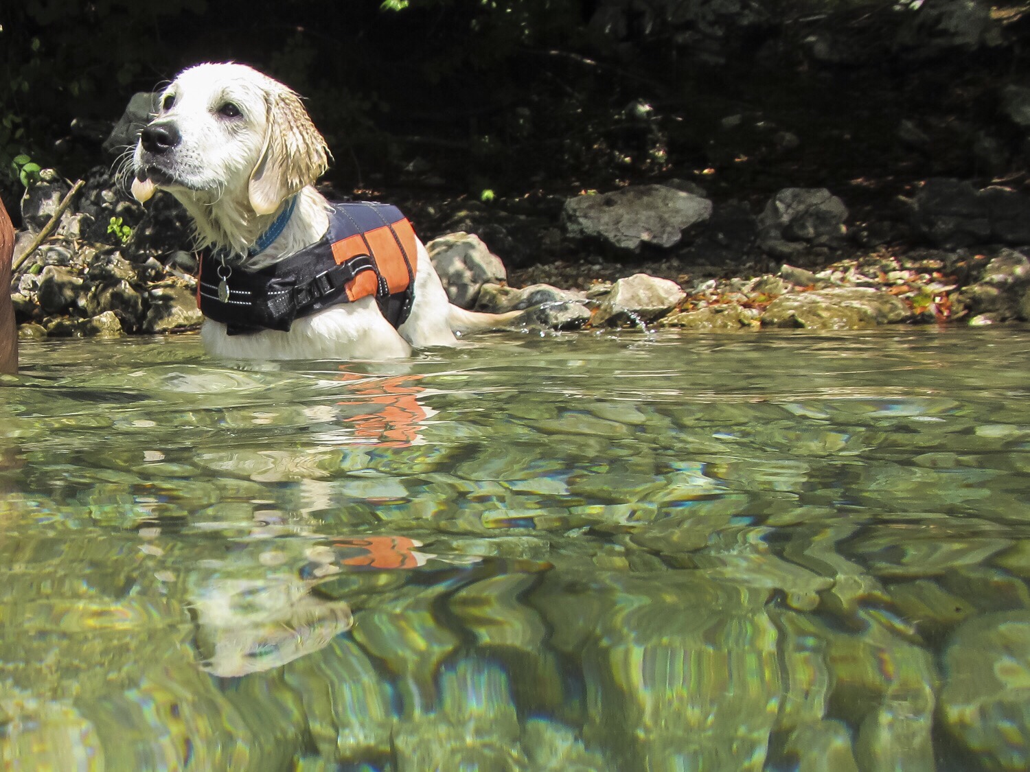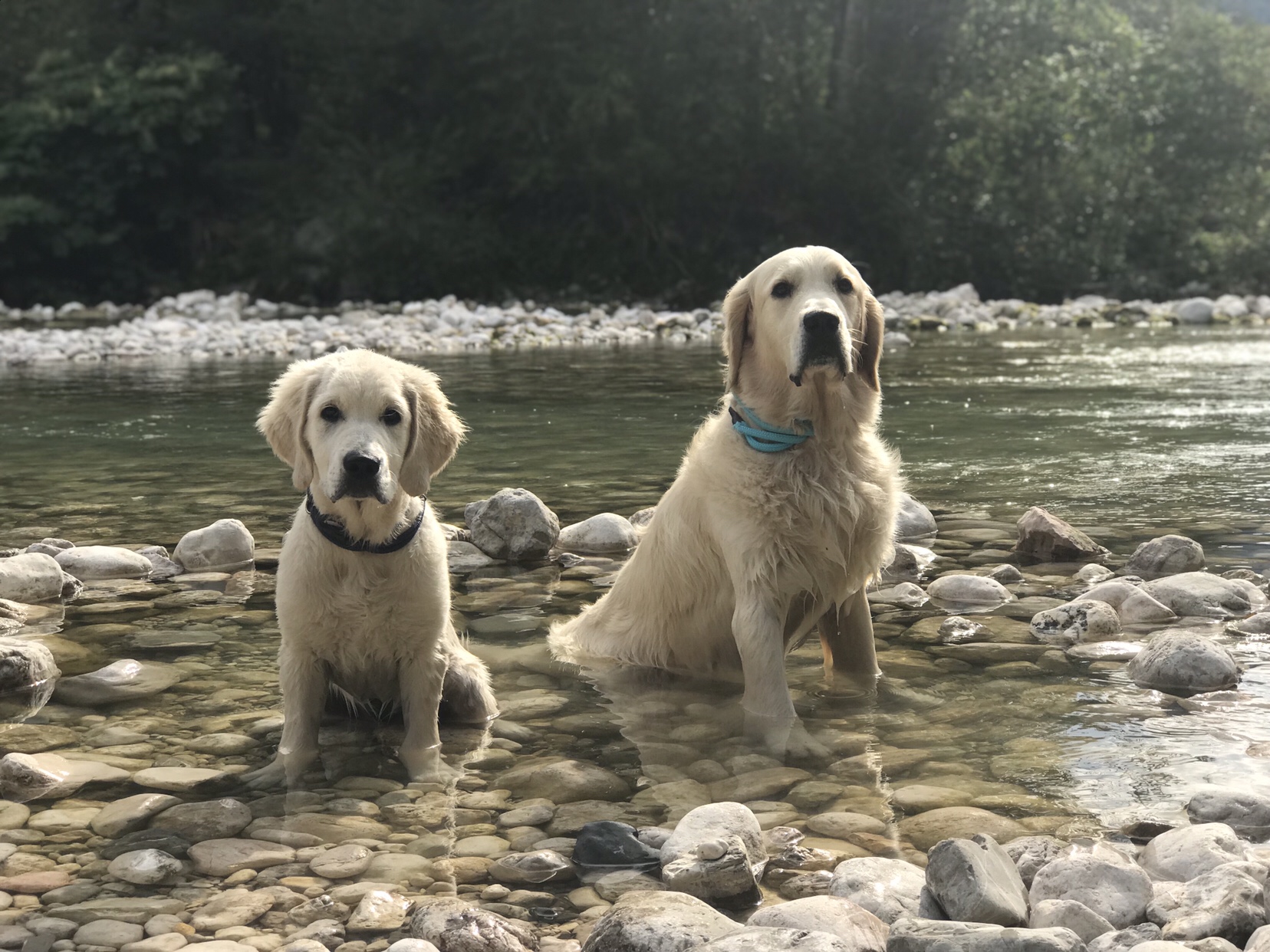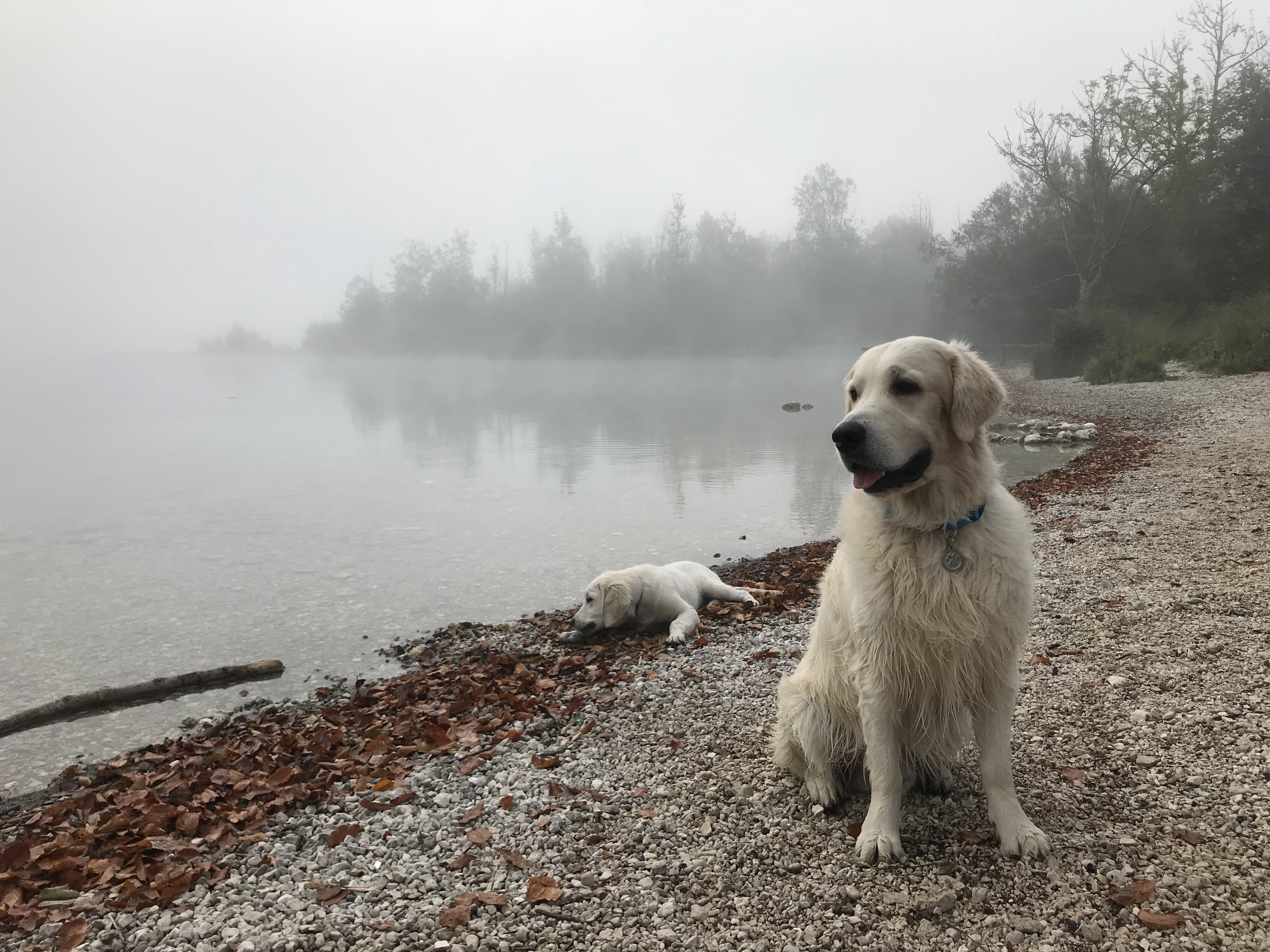 Mire megreggeliztünk már nyoma sem volt a ködös reggelnek, sütött a nap. Az időjárás-előrejelzés erre a völgyre az elkövetkezendő tíz nap közül csak mára ígért napsütést. Sőt a többi napra esőt jósol. (Mondjuk mi ebben nem hiszünk!) Egyértelmű volt, hogy akkor ma tavazunk. Elindultunk Lidiéknek megmutatva az általunk már ismert szakaszokat: a tó Ukanc felőli végéből a másik végéig mentünk imitt-amott megállva egy kicsit fürdeni, egy kicsit pihenni. Boogie előtt le a kalappal. Jövő héten lesz 4 hónapos, de a kis nyurga lábaival lelkesen és töretlenül végignyomta ma velünk a túrát.