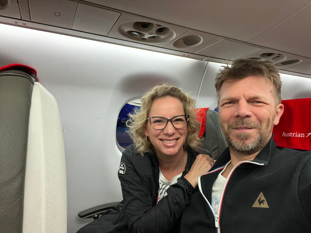 Hazafelé a hosszú járat még mindig nem Lufthansa volt. Totál nem vagyunk hozzászokva, hogy a Lufthansa oldalán megveszünk egy oda-vissza repjegyet, és a négy járatból hármon tök más légitársaság logója van. Most az Eurowings Discover repcsijével jöttünk. Szerintem jobb volt mint a kifelé menő Austrian Airlines.