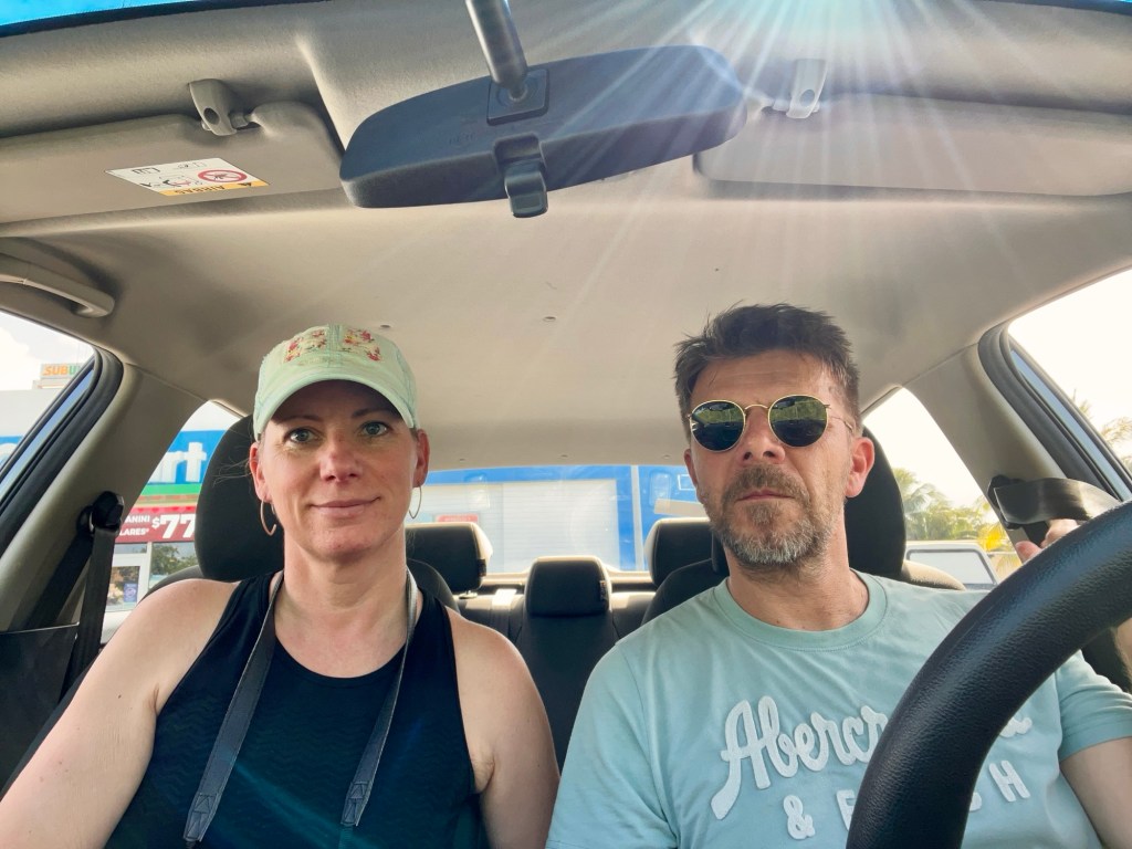 A kórházból kb 10 órakor jöttünk el, akkor egy új tempót felvéve (az én új tetű tempómat), összepakoltunk (elsősorban Bandi), Zsófiékkal ittunk egy elköszönős limonádét, majd a bérelt szuper golf kocsinkkal elmentünk a komp kikötőbe. Furcsa volt, a szigeten tök sok helyen volt elterelés, de annyira időben indultunk, hogy ma semmi sem zavart meg minket, sőt az elterelés miatt láttunk új részeket is.