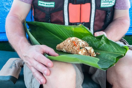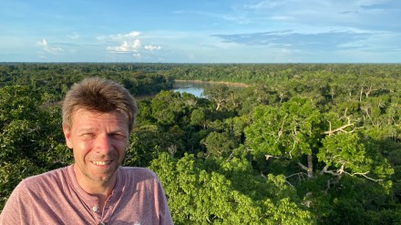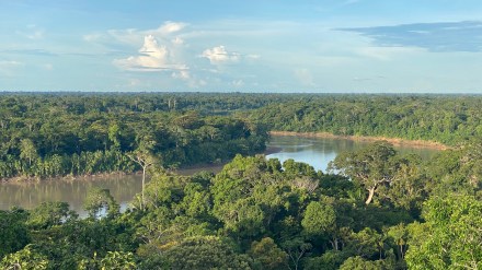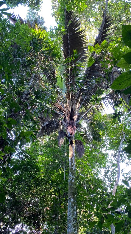 Mi nem madárcsicsergésre ébredünk, hanem maki makogásra. 5:15-kor olyan hangzavart csináltak az “ablakunk” melletti erdős részen, hogy pizsamában kimentünk makit keresni/nézni. Nem is volt baj, mert 6-kor indulni akart a 4 fős kis csapatunk ara papagájokat nézni. Egy pár perces sétára a folyó partján van két madárles. Oda mentünk, ahol jellemzően megjelennek reggel 6 és 7 óra között. De ma reggel sajnos mégsem nekünk kedvezett a természet, a papagájok nem jöttek erre a területre. A leshez gyalogolva egy fa legtetején láttunk két ilyen papagájt tanácskozni, lehet akkor beszélték meg, hogy ezekkel a turistákkal ma kiszúrunk.