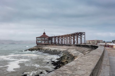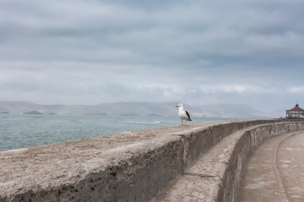 Az útikönyvből kiolvastam még egy ilyen óceánparti városrészt, amit erősen javasolt: Miraflores. A térkép szerint 14 km szinte végig a parton vezető úton. Gondoltuk, hogy ha nem is végig, de elindulunk, aztán legfeljebb ha meguntuk a gyaloglást, akkor hívunk egy Ubert. Kb. egy kilométeren belül voltunk még csak a szállásunktól a másik irányban, kiértünk az óceánparton futó szélesebb, elhagyatottabb útra, ahol egy már tegnap is látott jelenségre lettünk figyelmesek: a ház előtt, a járda szélén, ám az úttesten van egy medence tele vízzel. Nem tudni, hogy ezt így a nyári szünetre a gyerekeknek húzták fel a szülők csak kert híján a ház előtt landolt a medence, vagy ez amolyan célt szolgál, hogy a házban nincs víz és hát valahol mosakodni kell. A környék és a házak melyek előtt láttuk a medencéket abszolút szegényesek, emiatt én inkább a második verziót érzem a megoldásnak. Nem derült ki.