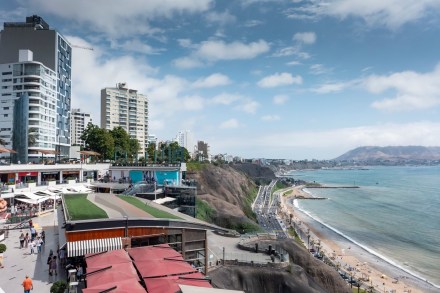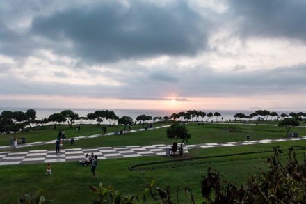 Aztán egyszer csak újra megváltozott a környék és egyre szebb újonnan épített óceánparti apartmanházak és szállodák nőttek ki a földből: megérkeztünk Miraflores-ba. Teljesen más világba csöppentünk. Lima több mint 50 kerületből áll, Miraflores abszolút a turistáké. 20-30%-kal drágább is, mint az eddigi helyek. Mindenféle márkás boltok, kiülős éttermek, parkok, bérelhető elektromos roller és bicikli, amit persze csak ezen a környéken használhat az ember. Csodás pálmafás, naplemente nézős óceánparti sétányok, játszóterek, kutyás parkok, amit mi is megcsodáltunk vacsora után.