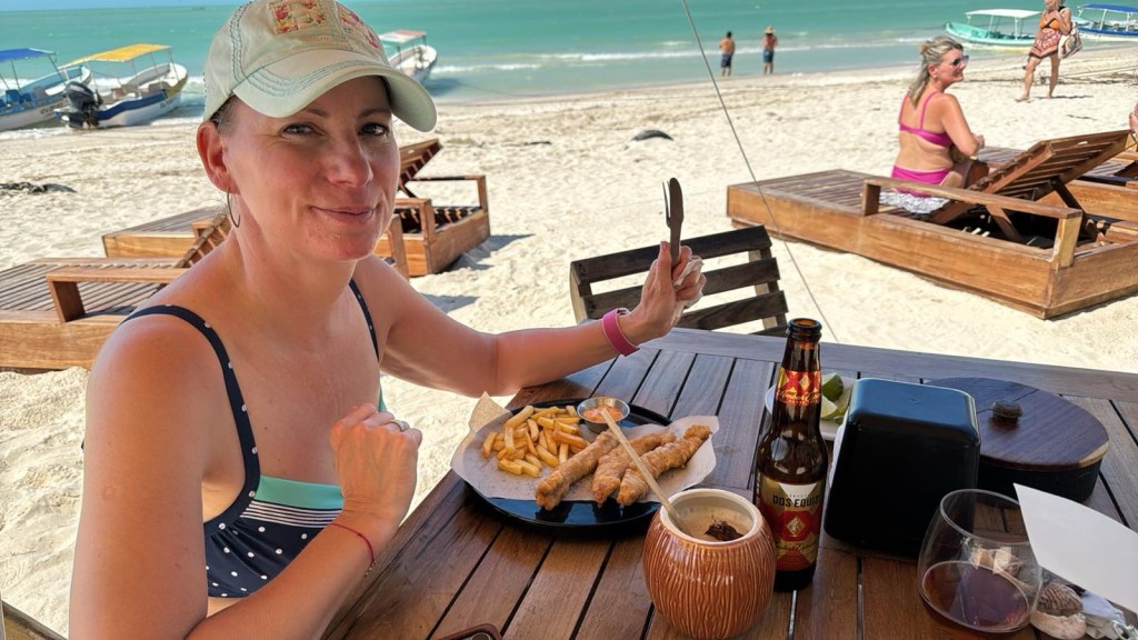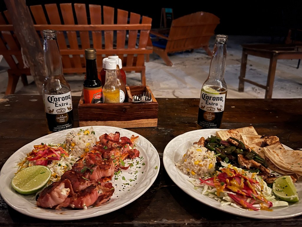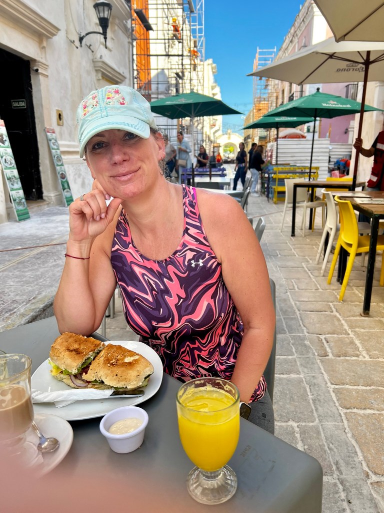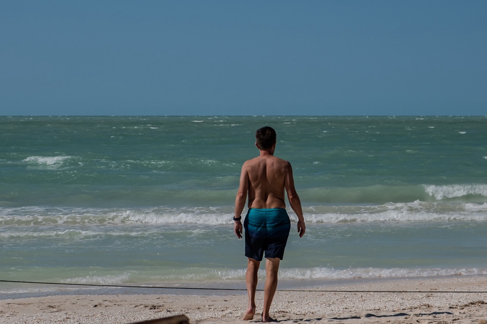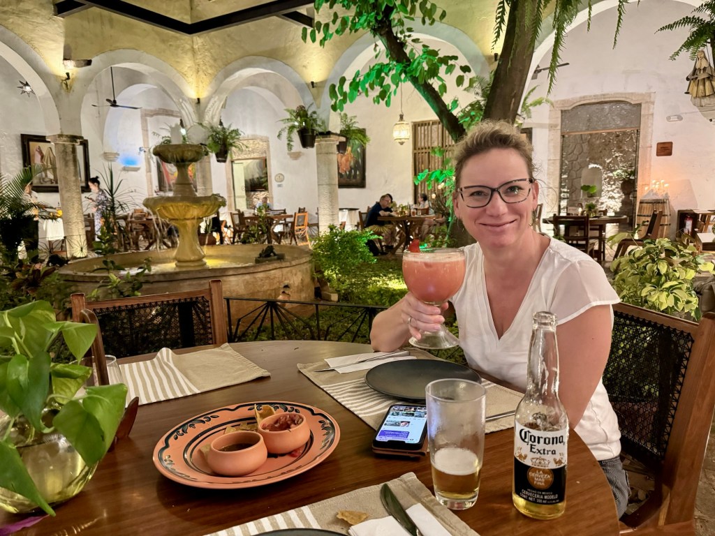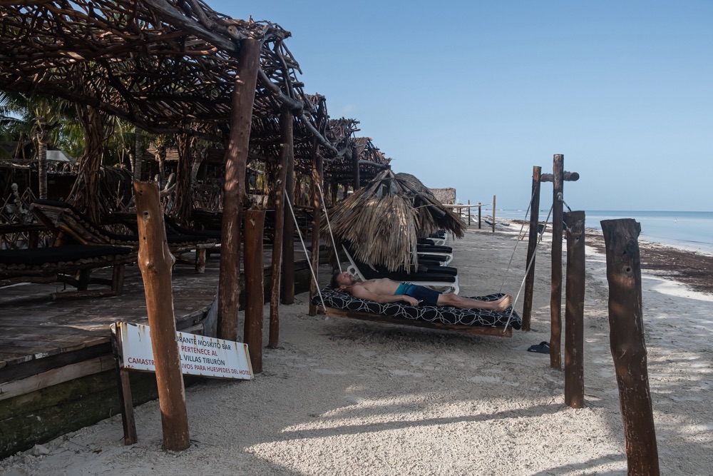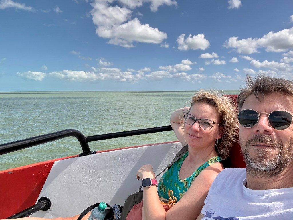 Holboxban végtelen nyugira ébredtünk. Kaptunk nagyon finom reggelit, majd még Bandi szeretett volna megmártózni az óceánban. Kisétáltunk és mindketten élveztük az elő-elő bújó napot. Majd összepakoltunk és míg vártuk a taxink beszélgettünk a szállásadónkkal. Elmesélte, hogy 4 napja, hogy ért térdig a víz mindenhol, a szállásokon hogy csapott be a víz a szobákba, és hogy mi mindent tett tönkre a víz. Az is kiderült, hogy a tegnapi karnevál miatt most igazán sok volt a turista, nem szokott ennyi lenni. Az elmúlt 5 évben robbant be a szigeten a turizmus, ami azért is érdekes, mert azért közben csak volt egy közel három évig tartó Covid.