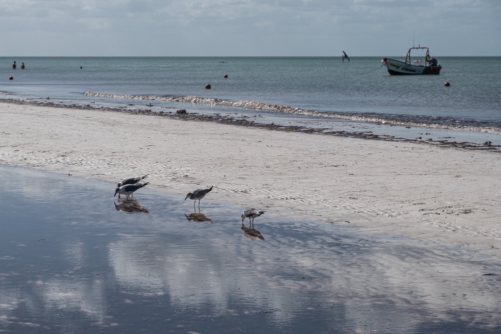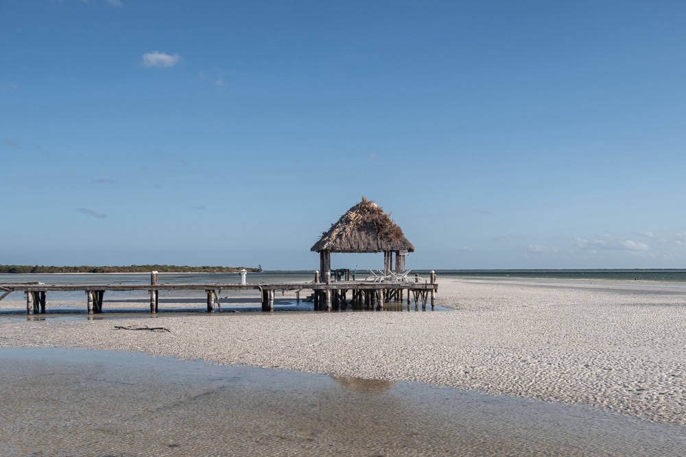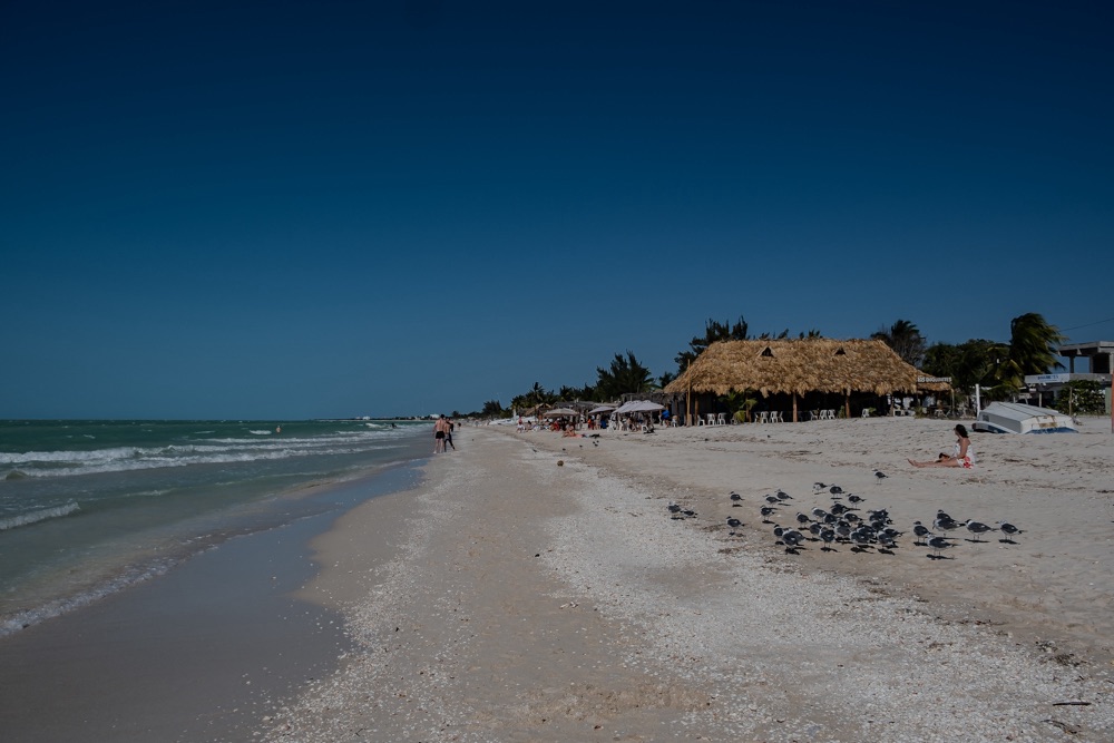 Utána kocsival bementünk Celestúnba, ami egy kis halászfalu. A fehér homokos part kellemesen kiépítve néhány beülős hellyel. Itt elpihengettünk vagy két órát élvezve a látványt, az ebédet és a hozzá kapott koktélt.