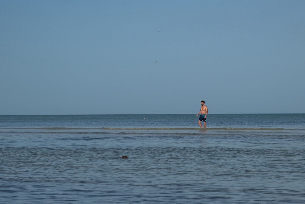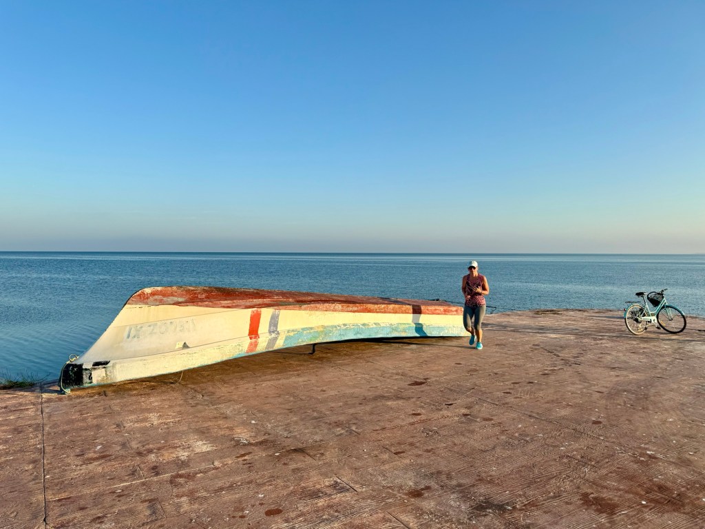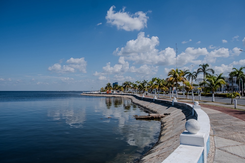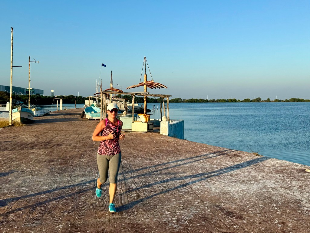 Campeche nagyon megtetszett nekünk. Annyira, hogy felkeltünk reggel 6-kor, hogy a tengerparton mozogjunk még az erős napsütés előtt: Bandi bringával én futással. Míg én kocogtam Bandi fotózott is.