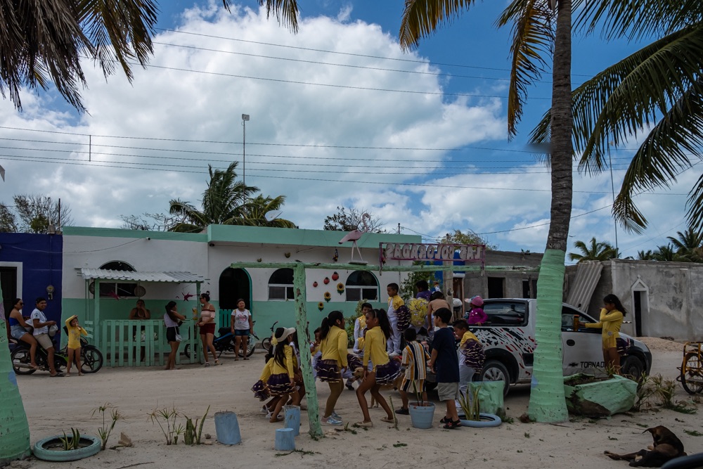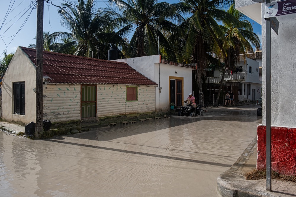 Este még a neten keresgéltem, hogy milyen fesztivál volt, amit láttunk, amikor megtaláltam, hogy 4 nappal ezelőtt egy olyan hideg front haladt át a térségen, ami súlyos áradásokat és nagy pusztítást okozott a Yucatán-félszigeten, főleg Holboxban. Bár Mexikó egyik legjobb klímájú helye, február 6-án, kedden a település jelentős része áram nélkül maradt, több fa kidőlt és a hőmérséklet is meglepően alacsony volt. Nemcsak a strandokat öntötte el a víz, hanem a utcák is komoly károkat szenvedtek. A boltok, éttermek és házak bejáratai teljesen víz alá kerültek az elmúlt néhány órában. – írta az egyik helyi lap.
