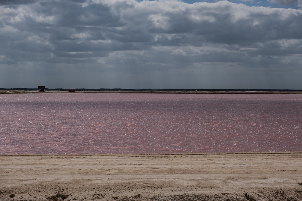 Las Coloradas a Yucatán-félsziget északi partján található egy olyan földdarabon, amely elválasztja a Mexikói-öblöt a Río Lagartos lagúnától. A tengeri só kinyerésére szolgáló hatalmas sópárologtató tavak találhatók ezen a földterületen, némelyiküknek a mikroorganizmusok miatt különös színe van, mint például a rózsaszín Laguna Rosának. Ez a Las Coloradas nevű zsákfalu szélén található. Tulajdonképp elég nagy lehúzás, mert valamennyire rálátni, de csak a 7 ezer forintos jegy megvételével mehetsz a sólepárló partjára egy 30 perces sétára. Erre mi sajnáltuk a pénzt meg az időt, így a parkolóból készült két kép. Inkább bementünk ebbe a kis faluba, Las Coloradasba, és autózva mind a három utcáját bejártuk.m
