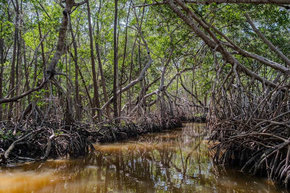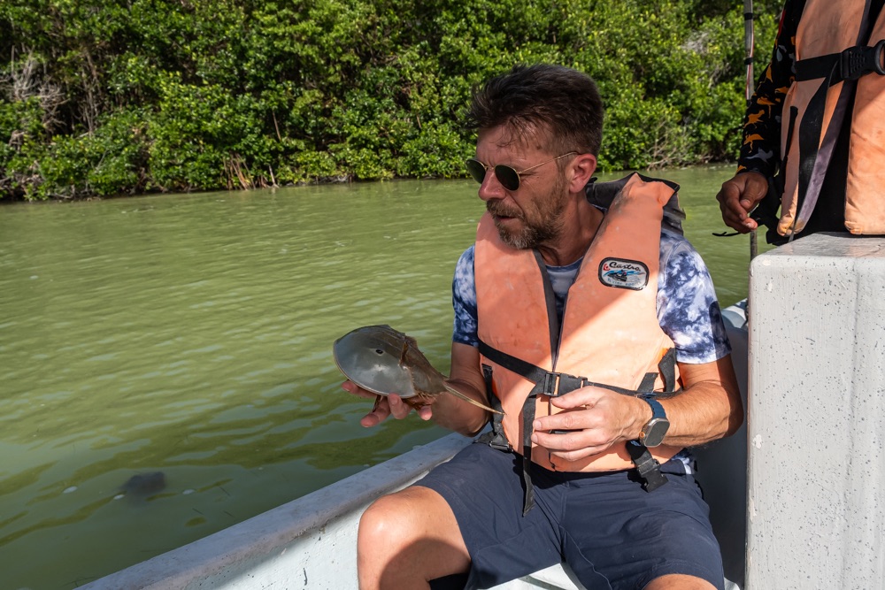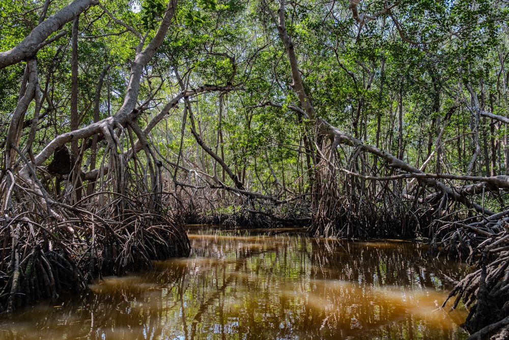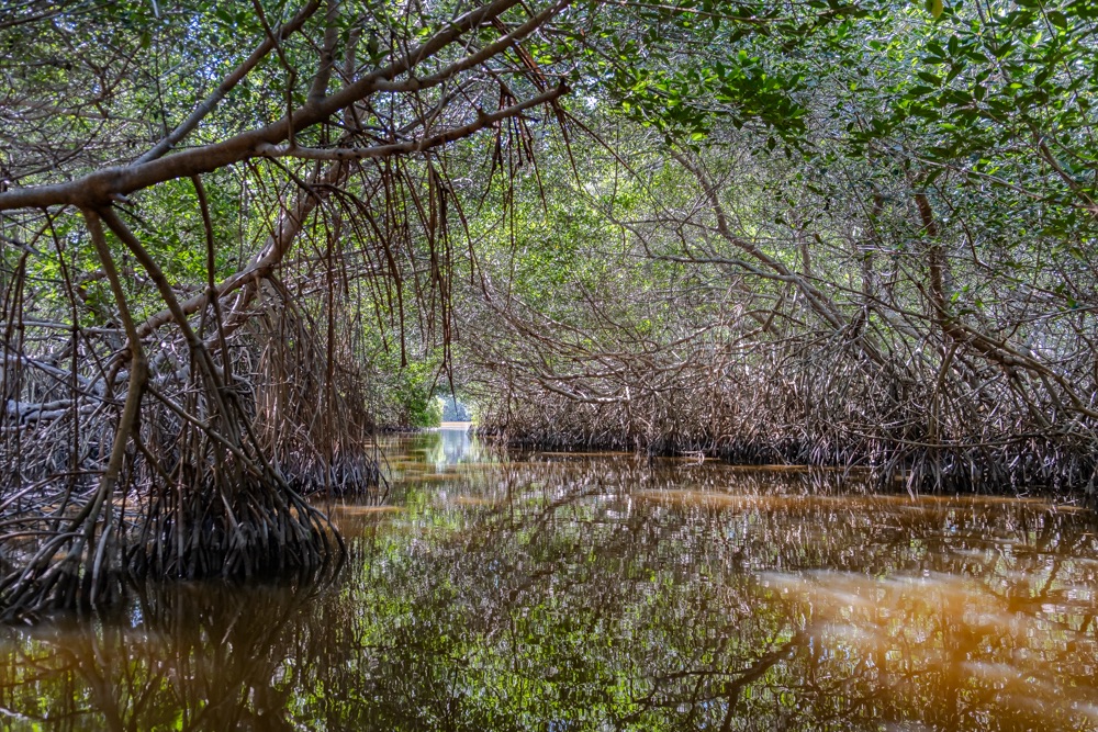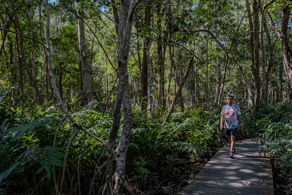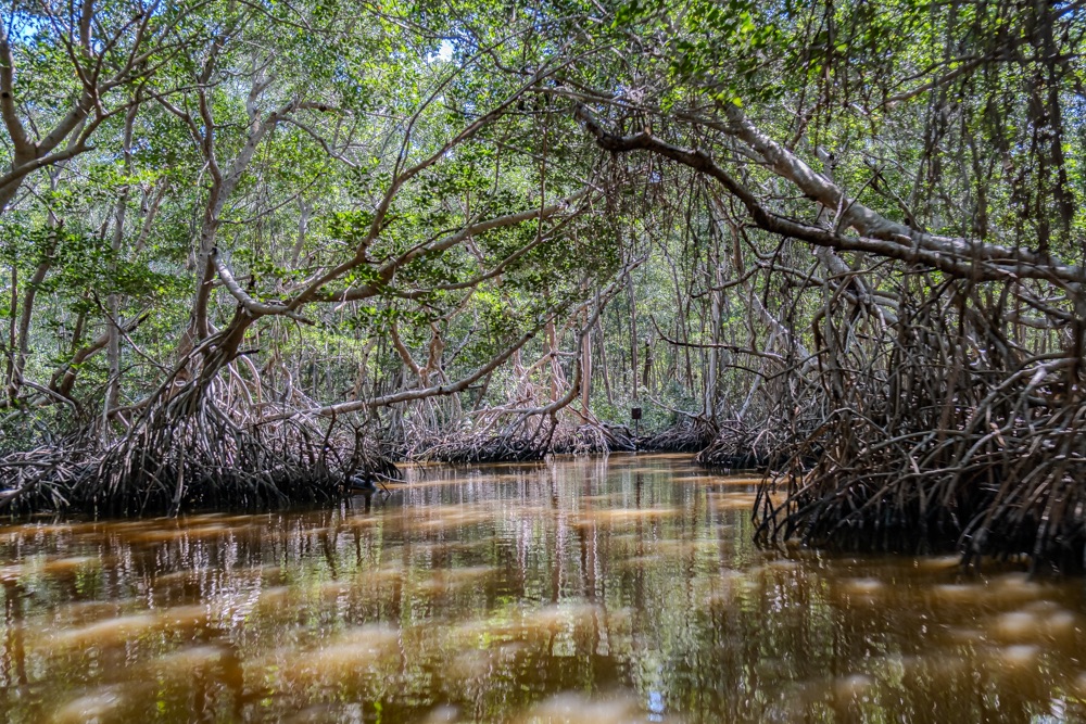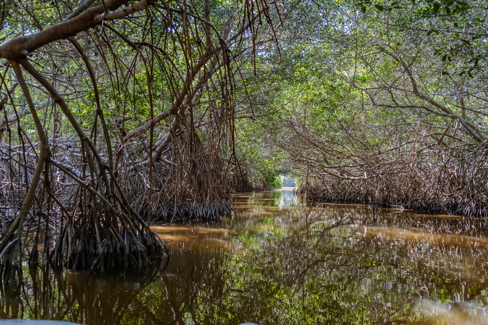 A vezető bácsink utána hatásvadász módon nagy sebességgel bekanyarodott a nyílt vízről egy kis ösvényre: egy mangrove csatornába. Leesett az állunk, hüledeztünk és nekem még a könnyem is kicsordult olyan szép helyen voltunk. A hab a tortán az volt, amikor egy baby krokodillal találkoztunk. Szerintem az én képeim nem annyira adják vissza ennek a területnek a szépségét. Bandi viszont készített egy videót, annak a linkét ide csatolom, ott megnézhetitek a délelőtti túránkat 3 percben.