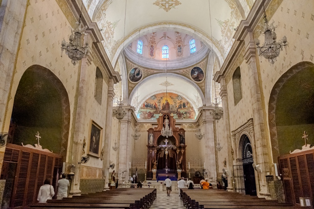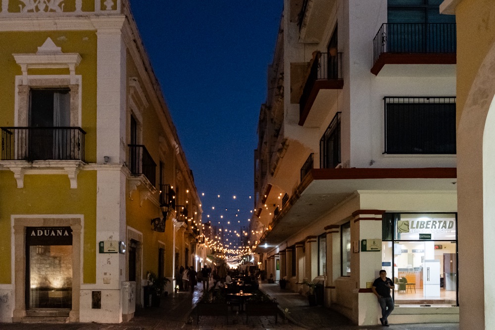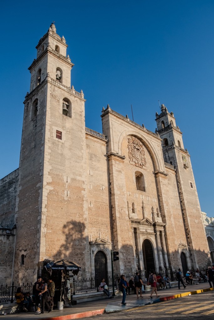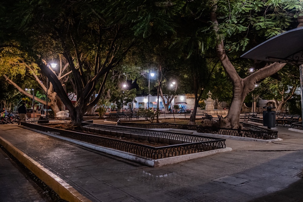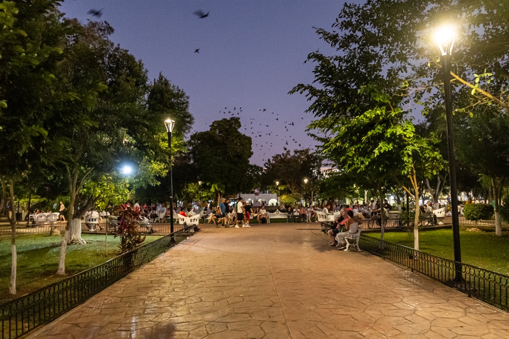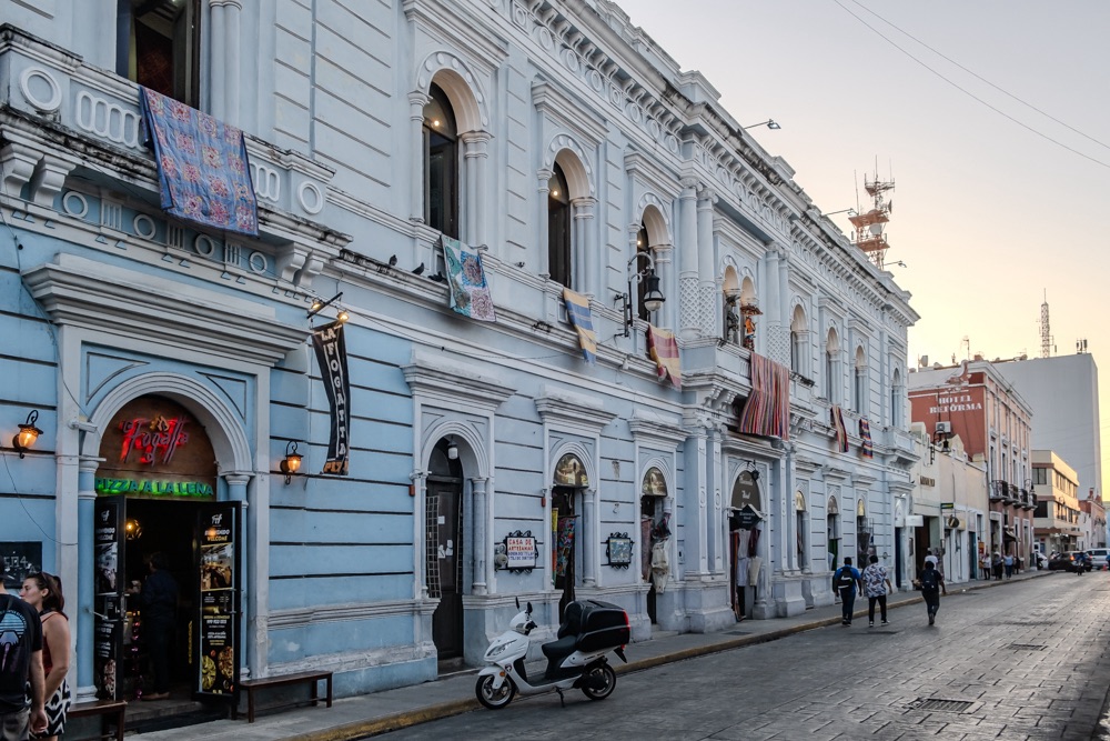 Mérida egy órányira van még Izamaltól, így onnan délután négykor egyenesen a méridai szállásra mentünk. Mérida a Yucatán állam fővárosa. (Eddig Quintana Roo államban voltunk.) Mérida lakossága 60 ezer (míg Érd lakossága 70 ezer), területe 858 km2 (míg Érd csak 63,3km2), ami így leírva nehezen hihető, de kétszer is rákerestem. Az biztos, hogy a város sokkal nagyobb, mint Érd. A belvárosban foglaltam szállást, ami egy éppen lezárt és felújítás alatt álló utcában van. 5 kört tettünk a környéken mire másfél utcával odébb sikerült leparkolni egy parkolóvá alakított udvarban. Egyrészt 99%-ban minden utca egyirányú a belvárosi részen (de legalább logikusan minden második azonos irányba), és az utcán nem parkolhatnak autók. Szóval fel volt adva a lecke még így is, hogy jeleztük előre a szállás felé, hogy szükségünk lesz parkoló helyre. Fél 6 volt mire megtaláltuk az épületet meg a bejáratát, de Bandi még akkor ment elintézni a parkolást. Aztán rákerestünk, hogy hol van a közelben patyolat, mert vészesen fogy a tiszta ruha. Találtunk is olyat, ami még nyitva volt, úgyhogy azzal kezdtük a városnézést, hogy tempósan kigyalogoltunk a környékünkről. Eddigi tapasztalatunk, hogy nem olyan olcsó Mexikó, se a kaja, se a szállás, se a belépők. De érthető, hiszen turistás helyen vagyunk. Na a mosoda jó áron volt: 3,5 kg ruhát holnap reggelre 90 pesóért (1800 forint) kimosnak.