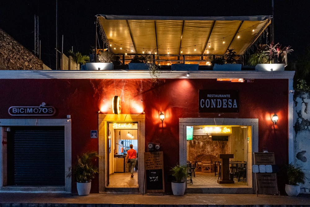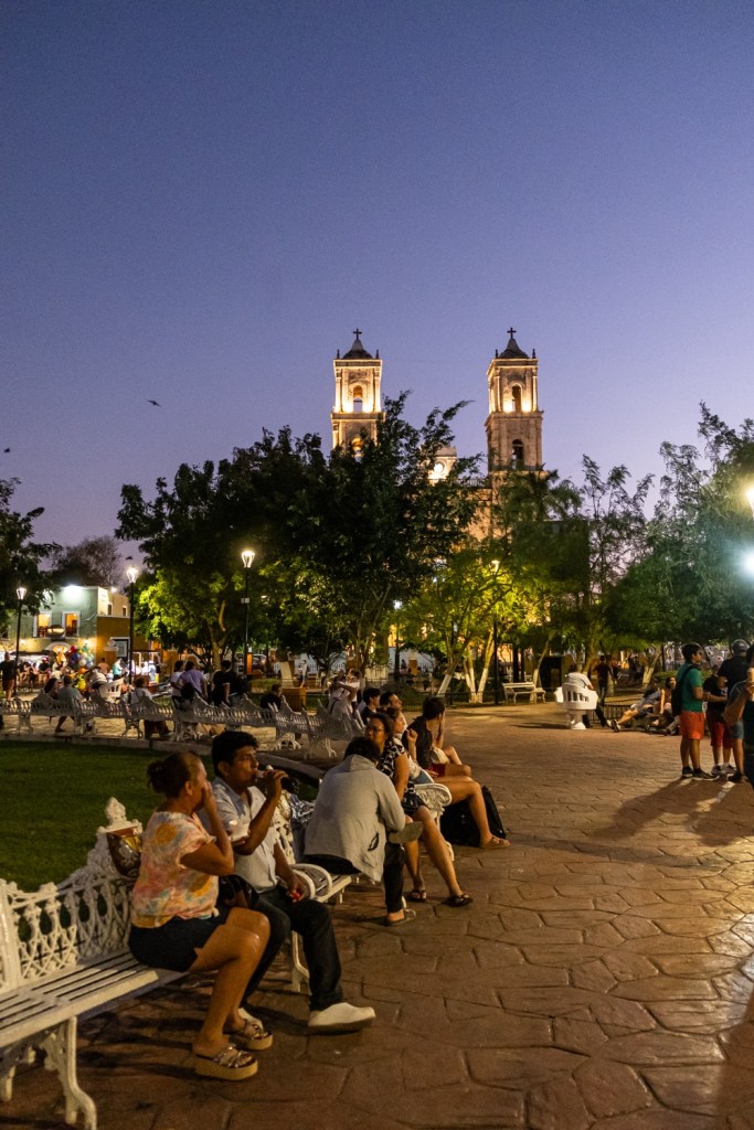 Innen északról visszafelé mentünk a sziget belseje felé tartva Valladolid városába, hogy a szállásunkat elfoglaljuk. A másfél órás utunk végén a belvárosban ismét karneváli hangulat várt minket lezárt Fő térrel, ami csak annyiból nehezítette a dolgunk, hogy a Fő tér melletti utcát kellett volna elérjük. Egy negyed órás kerülővel, jobban mondva autós városnézéssel elértük a hotelt. Nagyon cuki a város, engem a perui Cuzcora emlékeztetett, Bandi szerint nem. Bejelentkeztünk és hamar elindultunk a városba, hogy még elcsípjük a lemenő nap fényeit. Nem sikerült, de ráadásul elég éhesek is voltunk mert ebéd helyett Magyarországról hozott ropit és müzli szeletet ebédeltünk. Kisebb tekergés után beültünk egy mexikói étterembe, bár szerintem nem a város legjobb étterme volt.