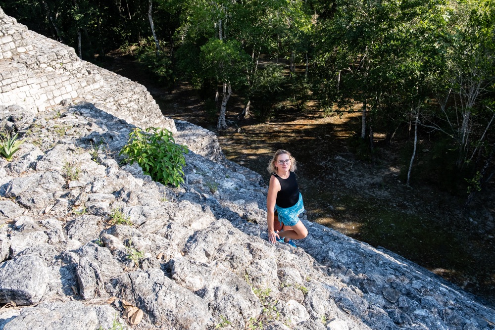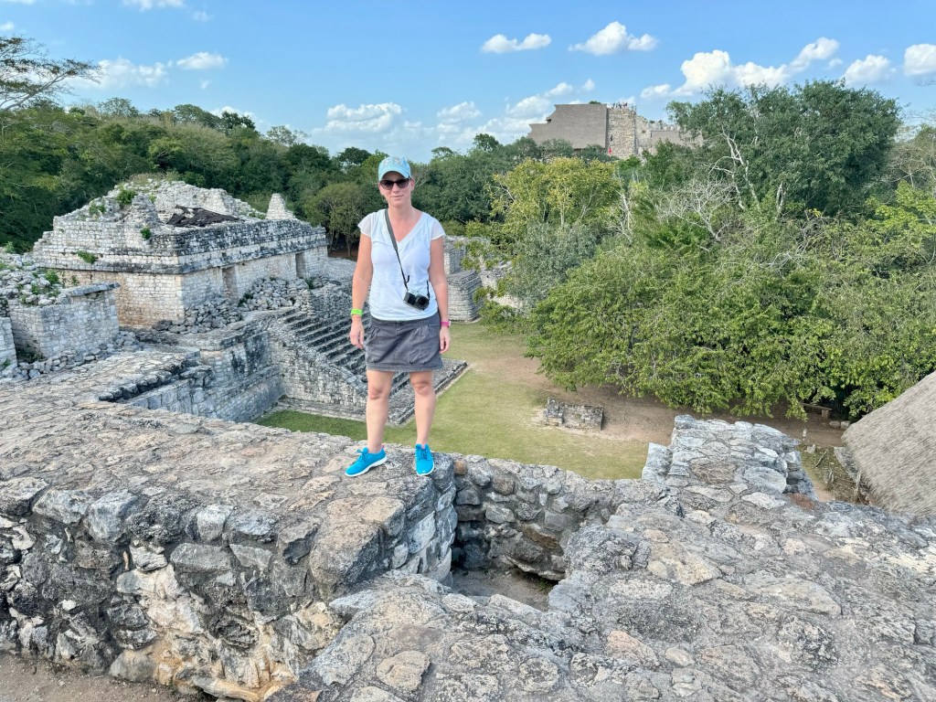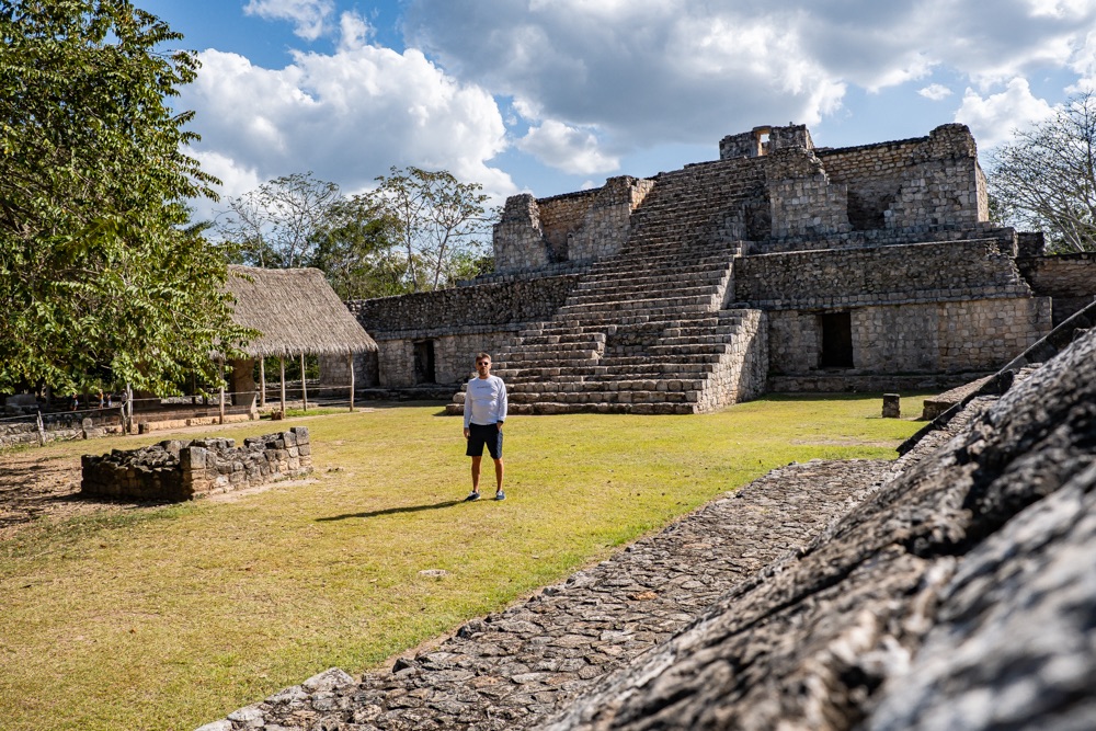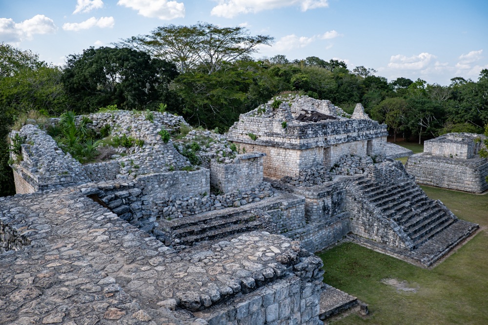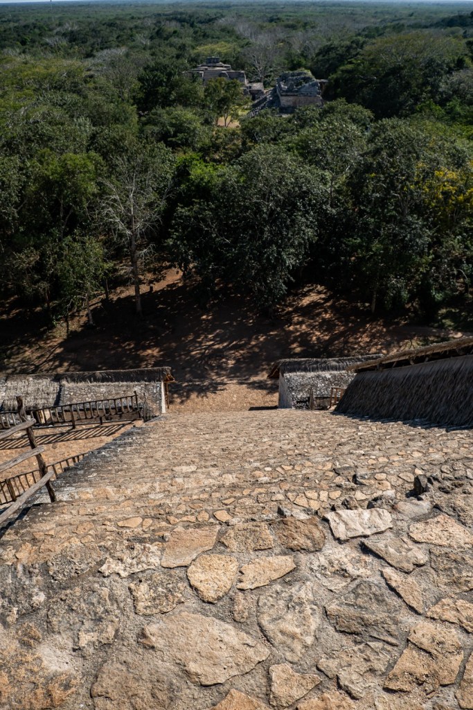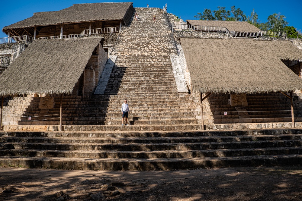 Míg Chichén Itza épület együttesei csak távolabbról tekinthetőek meg, minden körbe van zárva kerítéssel, hogy a turisták ne másszanak fel rá, addig Ek-Balam megmászható. A főépület egy piramis, 110 magas lépcsővel, fentről pedig gyönyörű kilátással az esőerdőre és a többi rom épületre. Kisebb és kevésbé látványos Ek Balam, mint Chichén Itza, de nekem mégis ez tetszett jobban, amiatt, hogy közelebbről érezhettük, láthattuk az épületeket. Nem voltak sokan, itt is nagyon kellemes ember mennyiséggel találkoztunk.