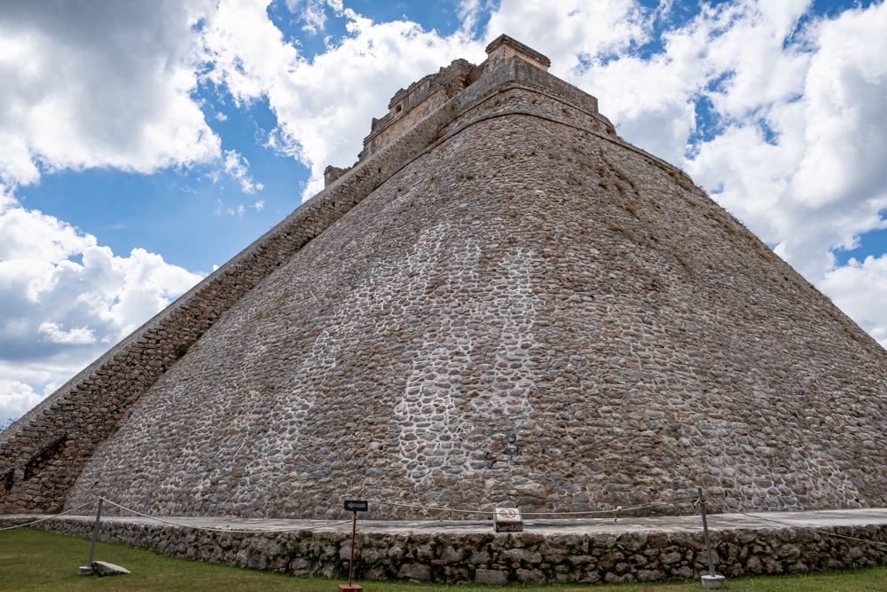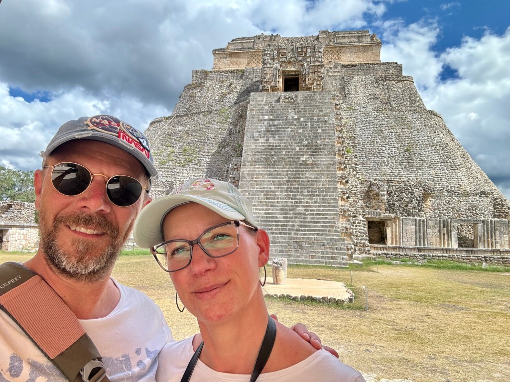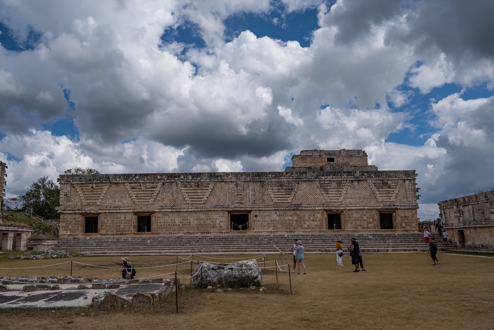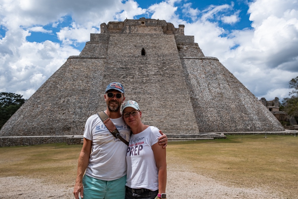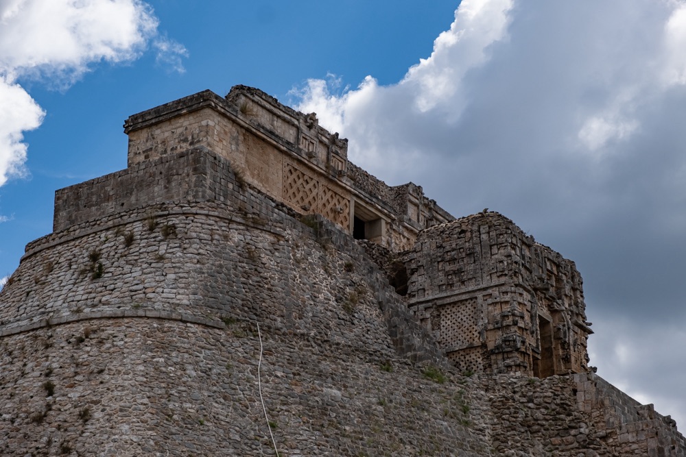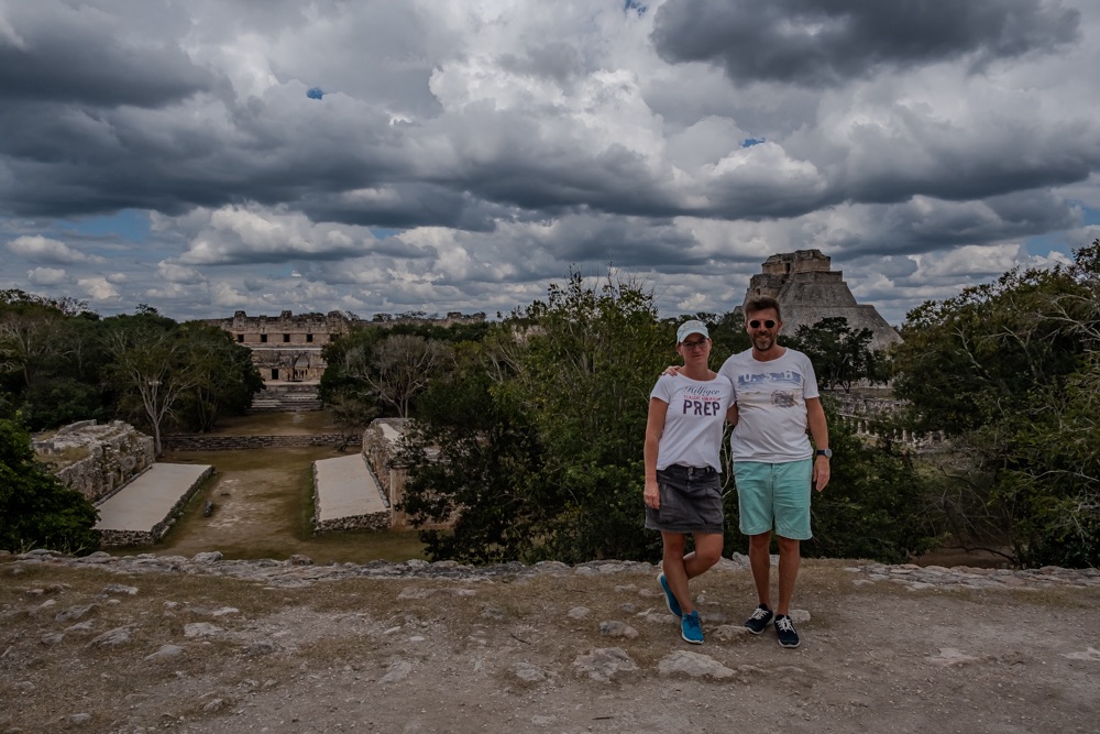 Délben tovább álltunk és az irányt Uxmal felé vettük. Uxmal városát a maják alapították. A maja civilizáció késői klasszikus korában, kb. i. sz. 800 és i. sz. 1000 között élte virágkorát és a Mayapán városszövetségbe tartozott. Uxmal város épületeinek homlokzatait mészkőtömbökből alakították ki és bonyolult mozaikokkal díszítették. Gyakoriak voltak a kőből kialakított vesszőfonadék minták és az istenségek nagyméretű torz arcmásainak ábrázolásai.