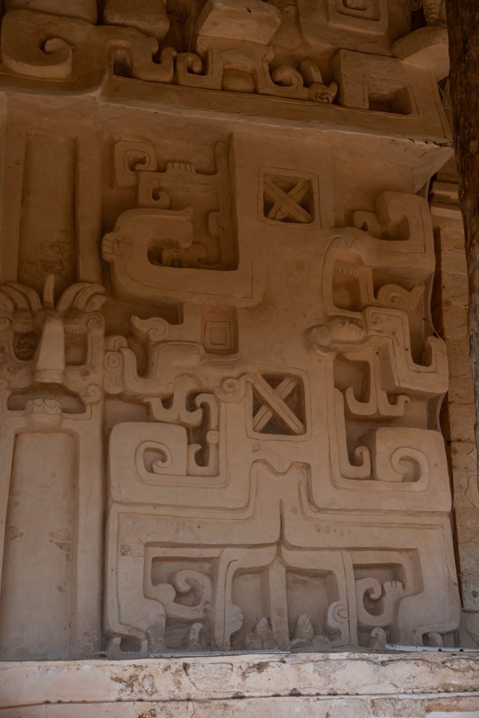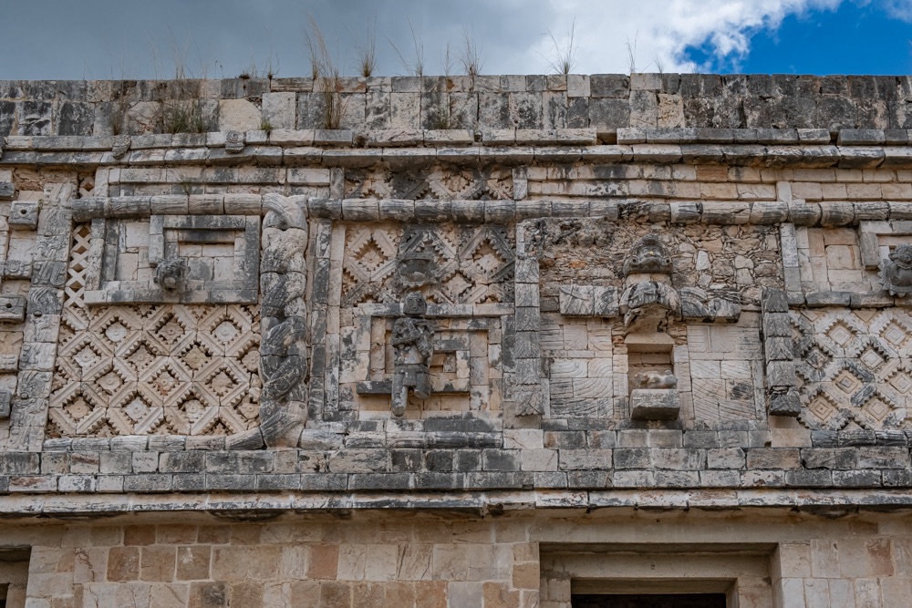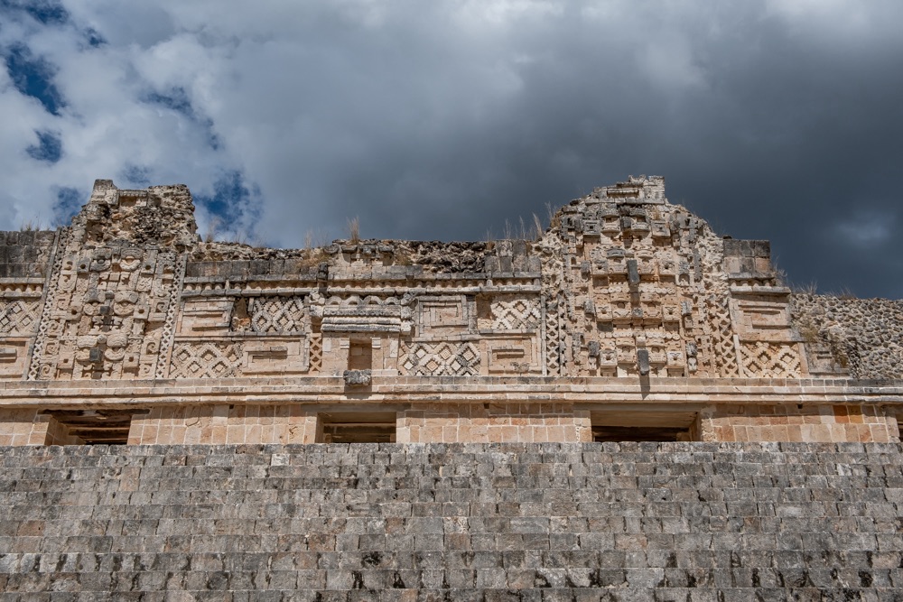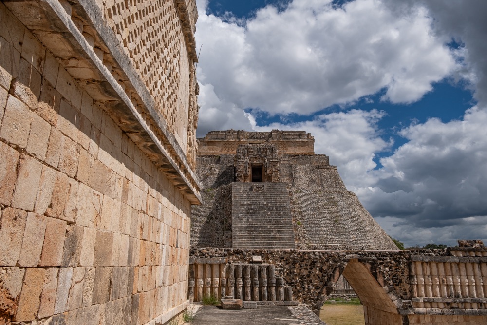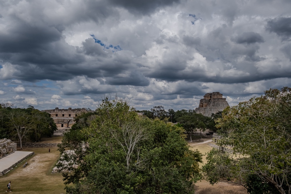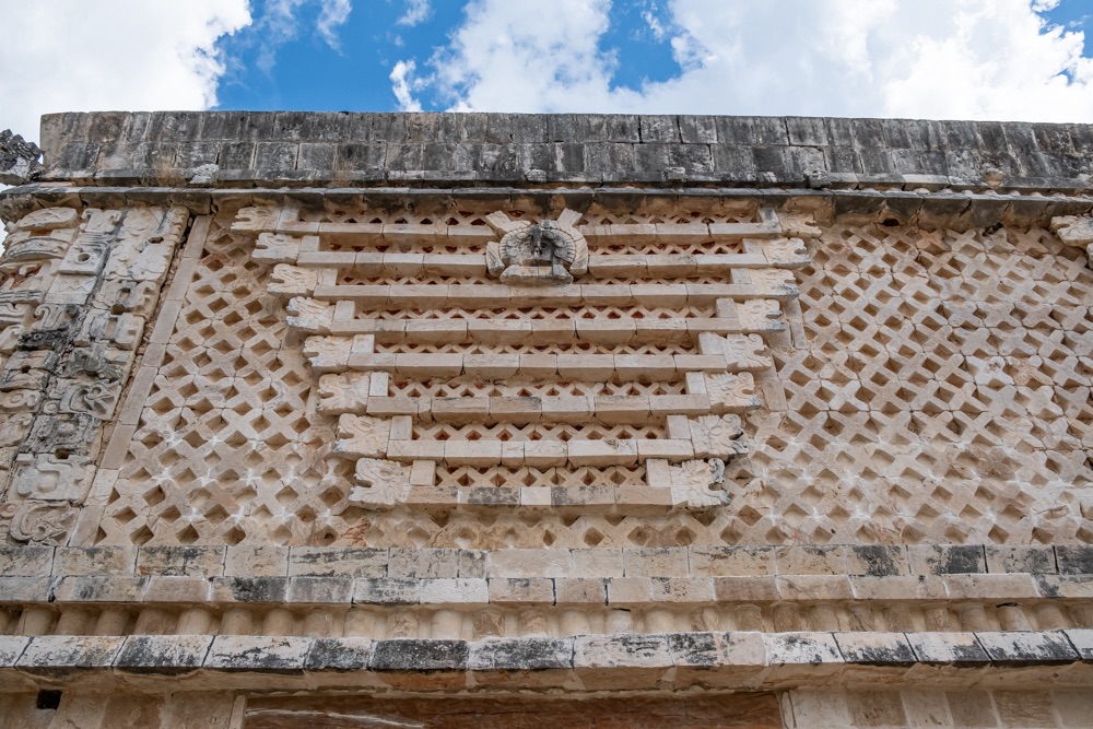 Délben tovább álltunk és az irányt Uxmal felé vettük. Uxmal városát a maják alapították. A maja civilizáció késői klasszikus korában, kb. i. sz. 800 és i. sz. 1000 között élte virágkorát és a Mayapán városszövetségbe tartozott. Uxmal város épületeinek homlokzatait mészkőtömbökből alakították ki és bonyolult mozaikokkal díszítették. Gyakoriak voltak a kőből kialakított vesszőfonadék minták és az istenségek nagyméretű torz arcmásainak ábrázolásai.
