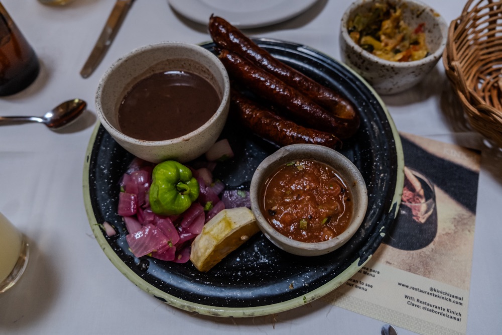 Izamalban egy ebéddel kezdtünk. (Kezd fogyni a müzli szelet, na meg Ákos több kaja képet kért.) Kikerestem a város legjobb éttermét. Nem is volt hely, de csak egy negyed órát kellett várni. Viszont mikor kijöttünk már elég sokan várakoztak. Bandi berendelt egy fekete lében úszkáló nagyon furcsa ételt. De szerinte nem volt rossz. Én végül nem kóstoltam meg, számomra annyira bizarr volt.