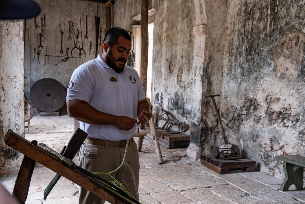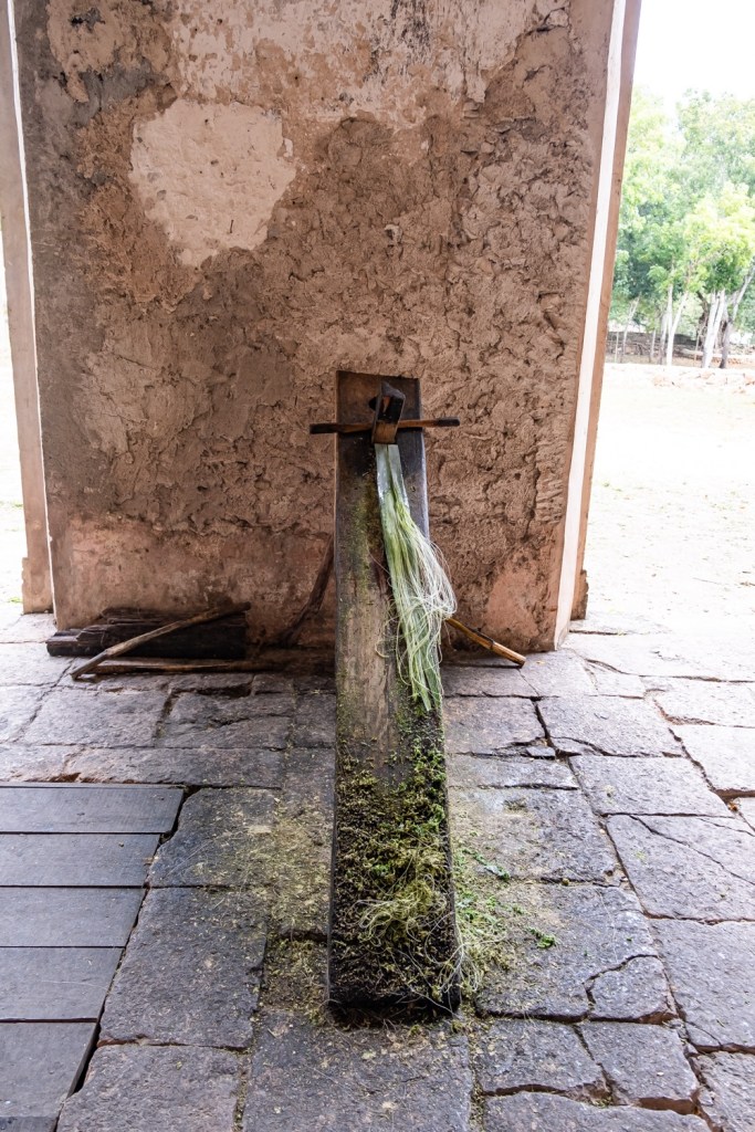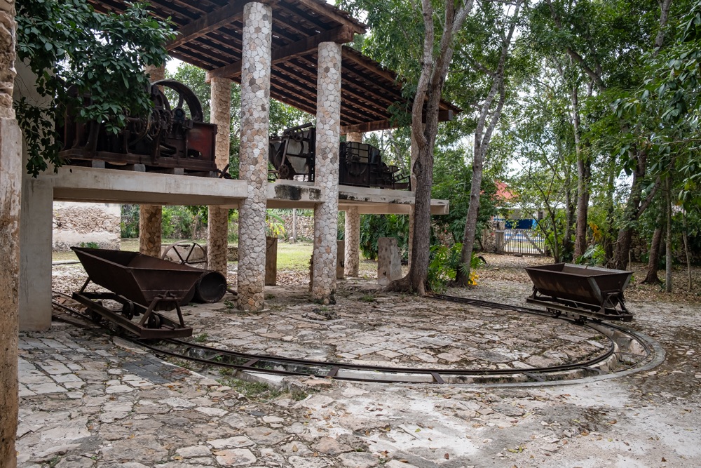 A falu mellett volt régen egy henequen ültetvény, régi rakott kőkerítés maradványai mutatják a terület határait. Az ültetvény viszont elég nagy területű, így kellett nekik “vasút”, amin megoldották a termés szállítását. És ma minket is itt szállítottak. De szerintem nem csak a sínek voltak 150 évesek, hanem a kocsi is, amit egy paci húzott.