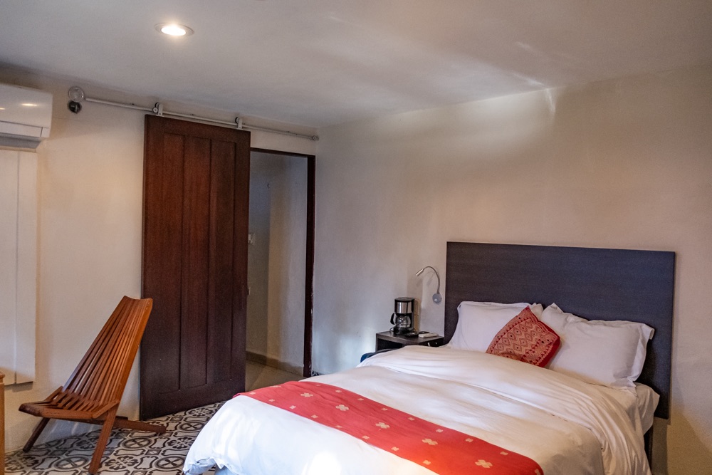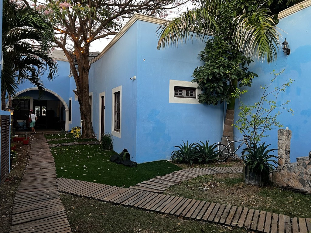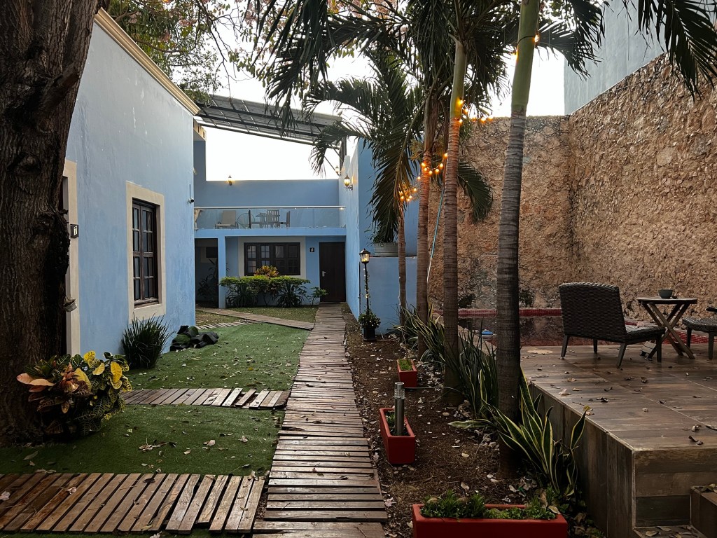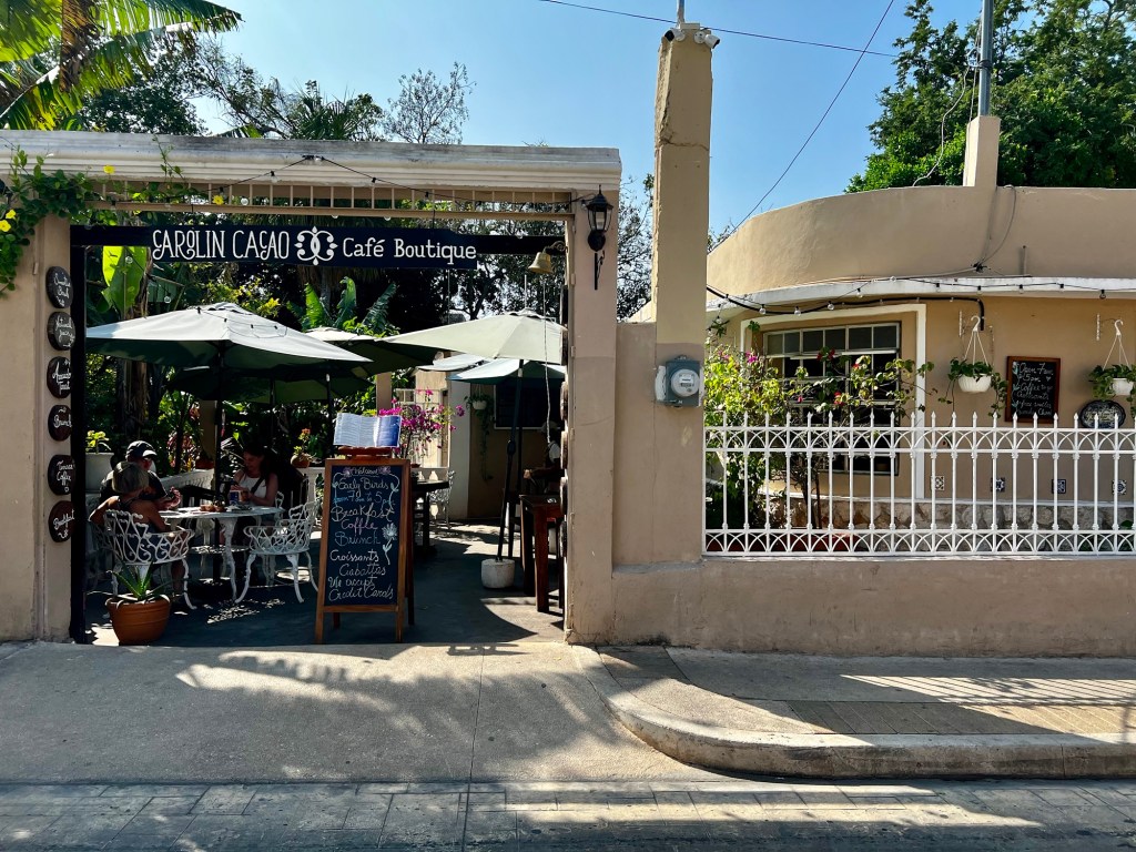 Reggeli után nem jelentkeztünk ki egyből a szállásról, hanem elsétáltunk a szomszéd sarkon lévő cenotéba. Ez annyira elképzelhetetlen, hogy a belvárosban, a Fő tér melletti utcában, a házak között van egy cenote. Első valladolidi esténken sötétben be tudtunk menni arra a területre, ahol le lehet menni a cenotéba, és már akkor felfedeztük, hogy még mielőtt vennénk jegyet, rá tudunk nézni, hogy mennyire van tele a hely. Nem volt tömeg, de minket a tegnapi nap elkényeztetett, így nem gondoltuk, hogy 10-nél több emberrel együtt akarunk fürdeni. Végül csak a város legjobb kávézóját kerestük fel, ami majd szemben van a Zaci névre hallgató cenotéval.