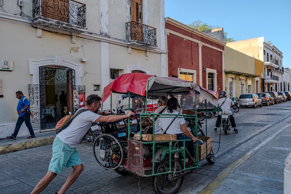 Délután kettő után nem sokkal végeztünk Uxmal felfedezésével, amikor úgy döntöttünk, hogy az ebédet egy helyi büfé szendvicsével oldanánk meg, hogy mielőbb elérjük új úticélunk: San Francisco de Campeche (röviden Campeche) nevű várost, mely Campeche állam fővárosa. (Szóval ma megint állam határt léptünk át: Yucatán államból Campeche államba.)